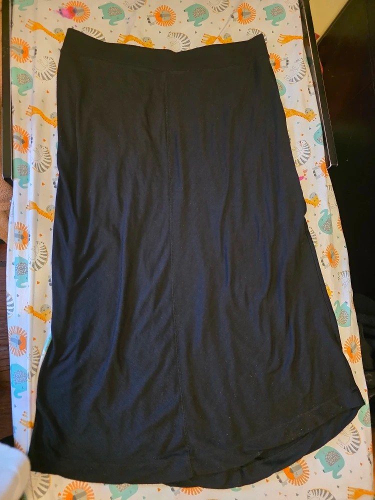 Selling a black maxi skirt! It's in great condition and would be a lovely addition to your wardrobe. It's a versatile piece that can be dressed up or down, perfect for any occasion