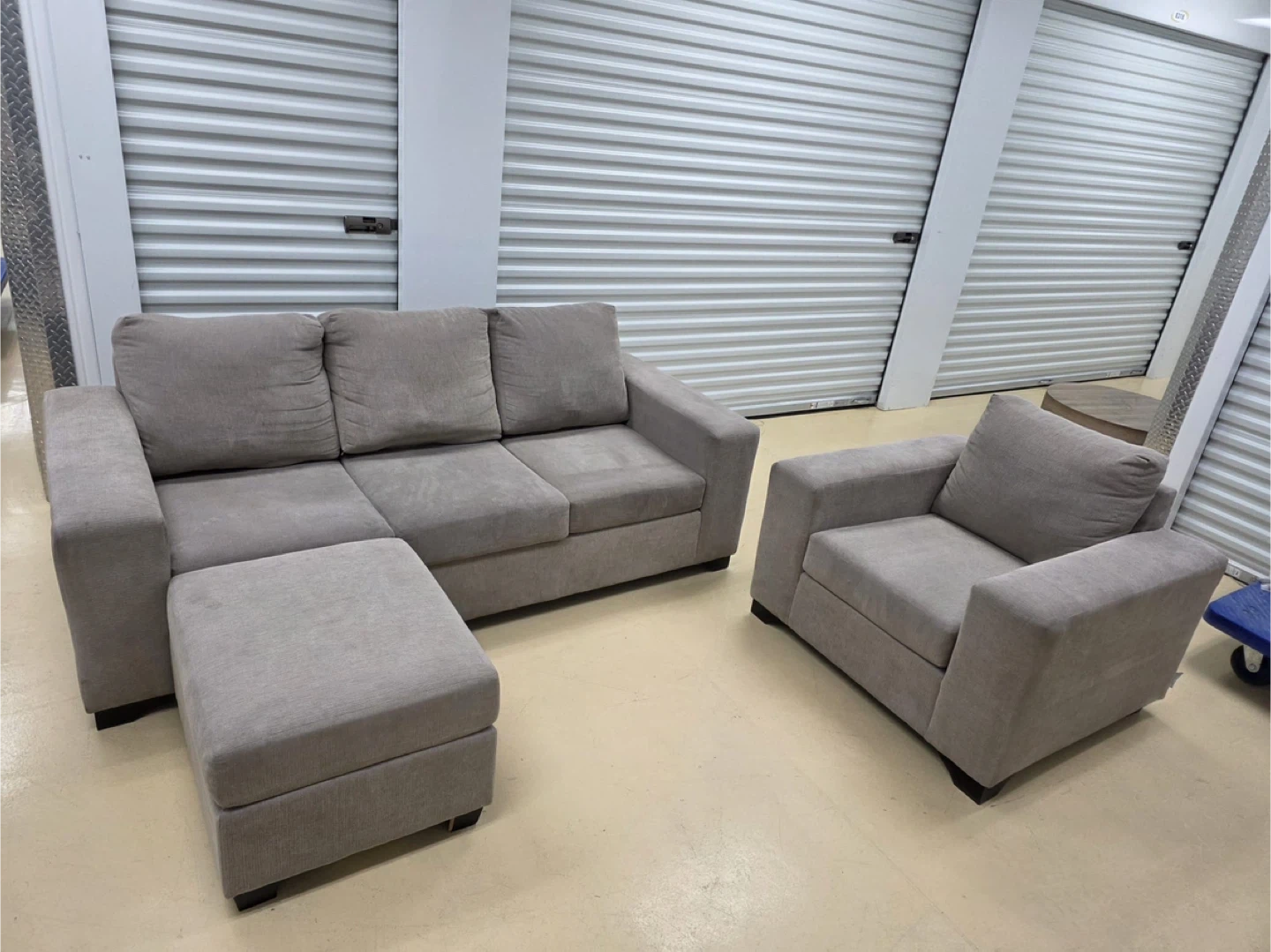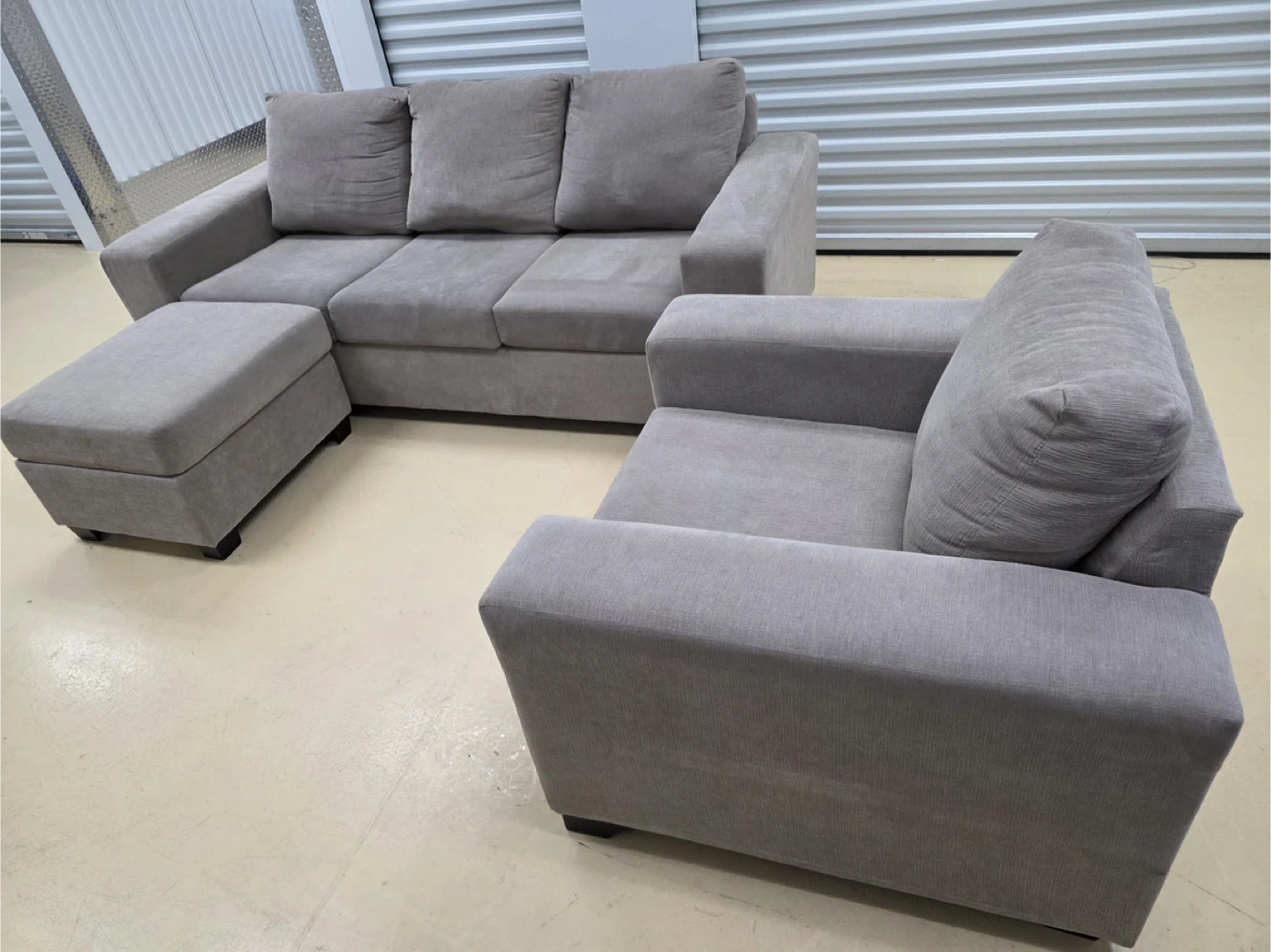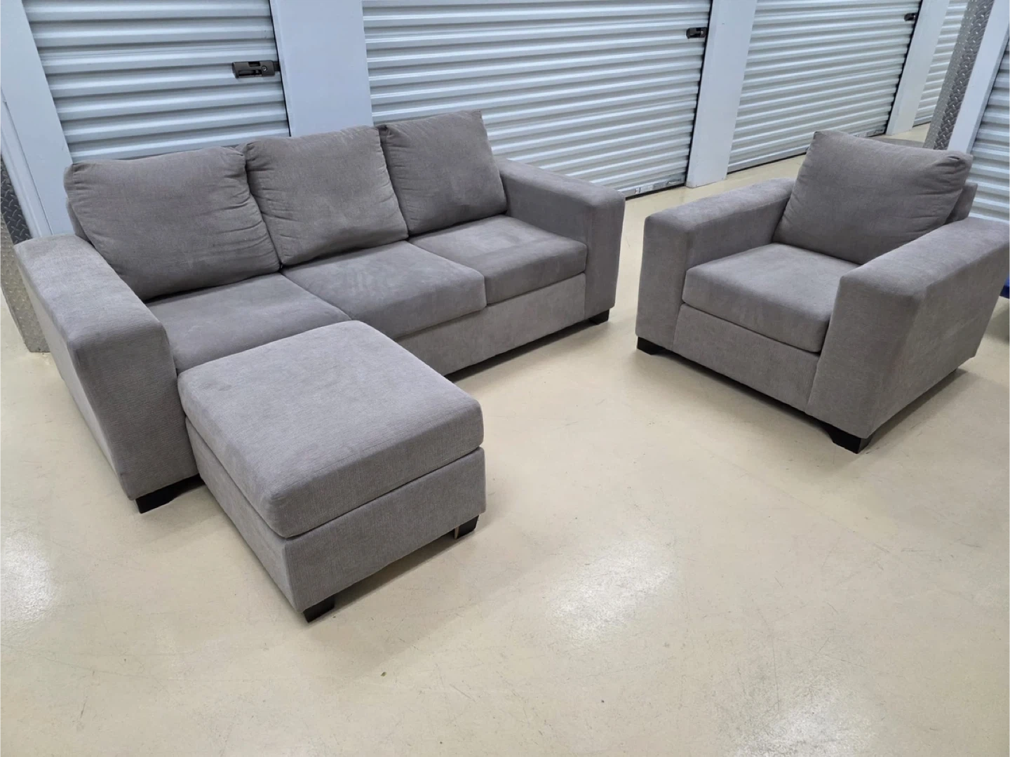 Grey Sofa, Loveseat, and Ottoman Set