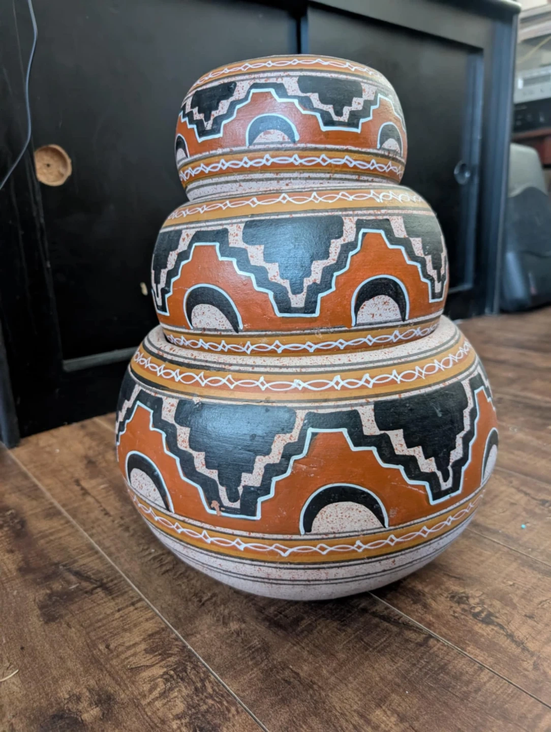 Mexican original.decorative ceramic pots with a unique tribal pattern. They're made of clay and come in three different sizes. Use them for small plants or as stylish decor!