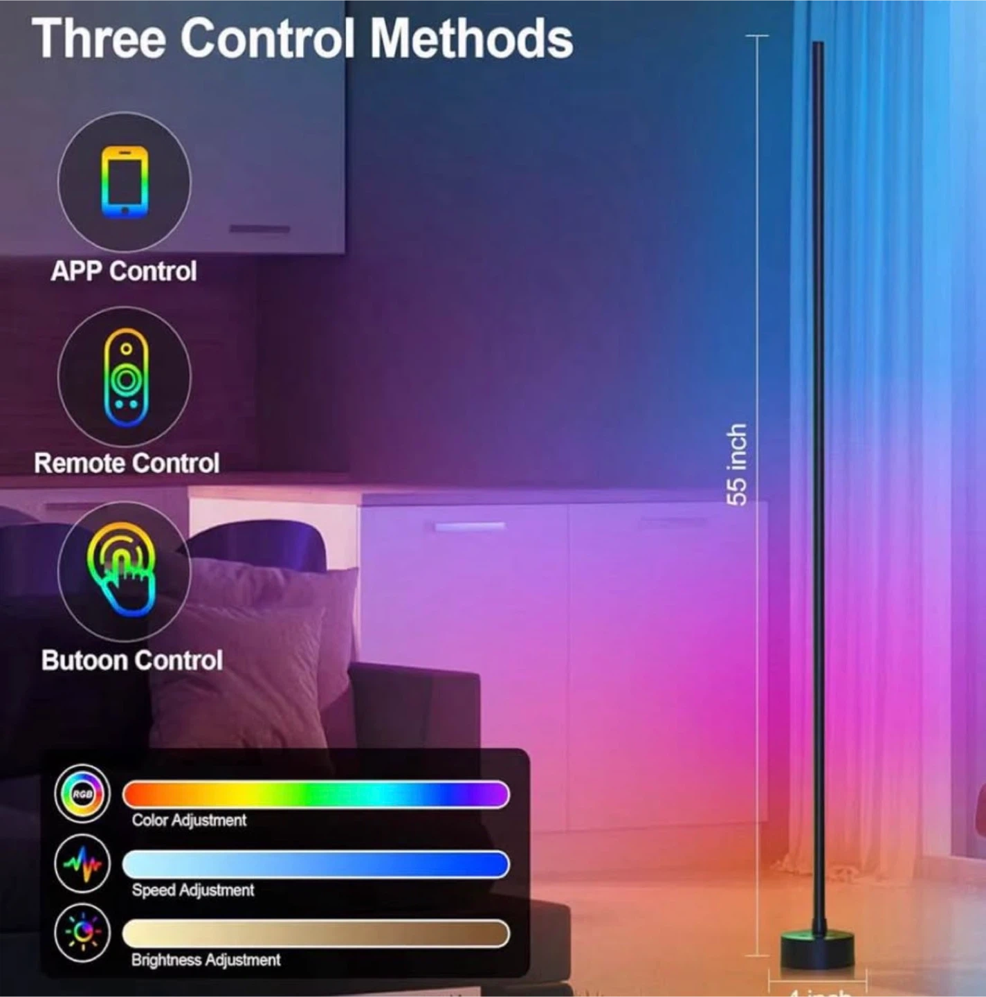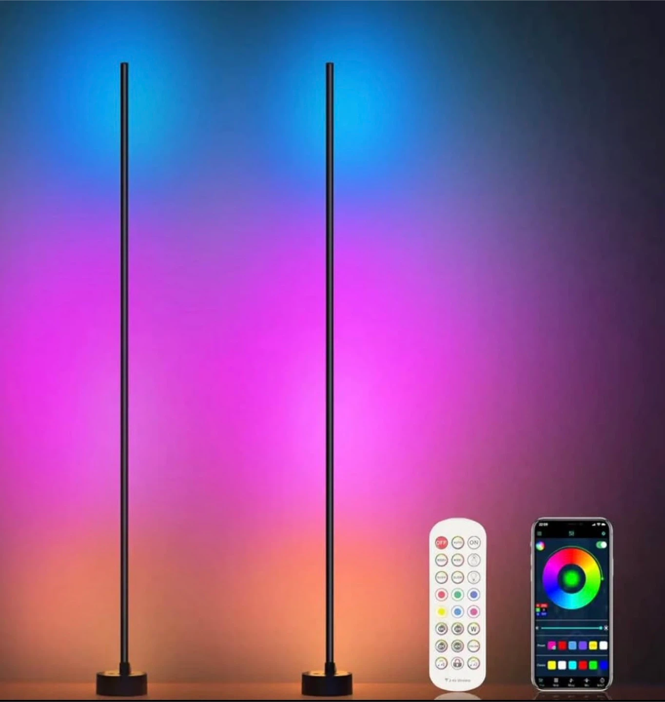Corner Floor Lamp, 2 Pack LED Floor Lamp with App & Remote, Smart RGB Corner Lamp with 16 Million Colors, Music Sync, Scene Modes, Color Changing Standing Lamps for Living Room, Bedroom