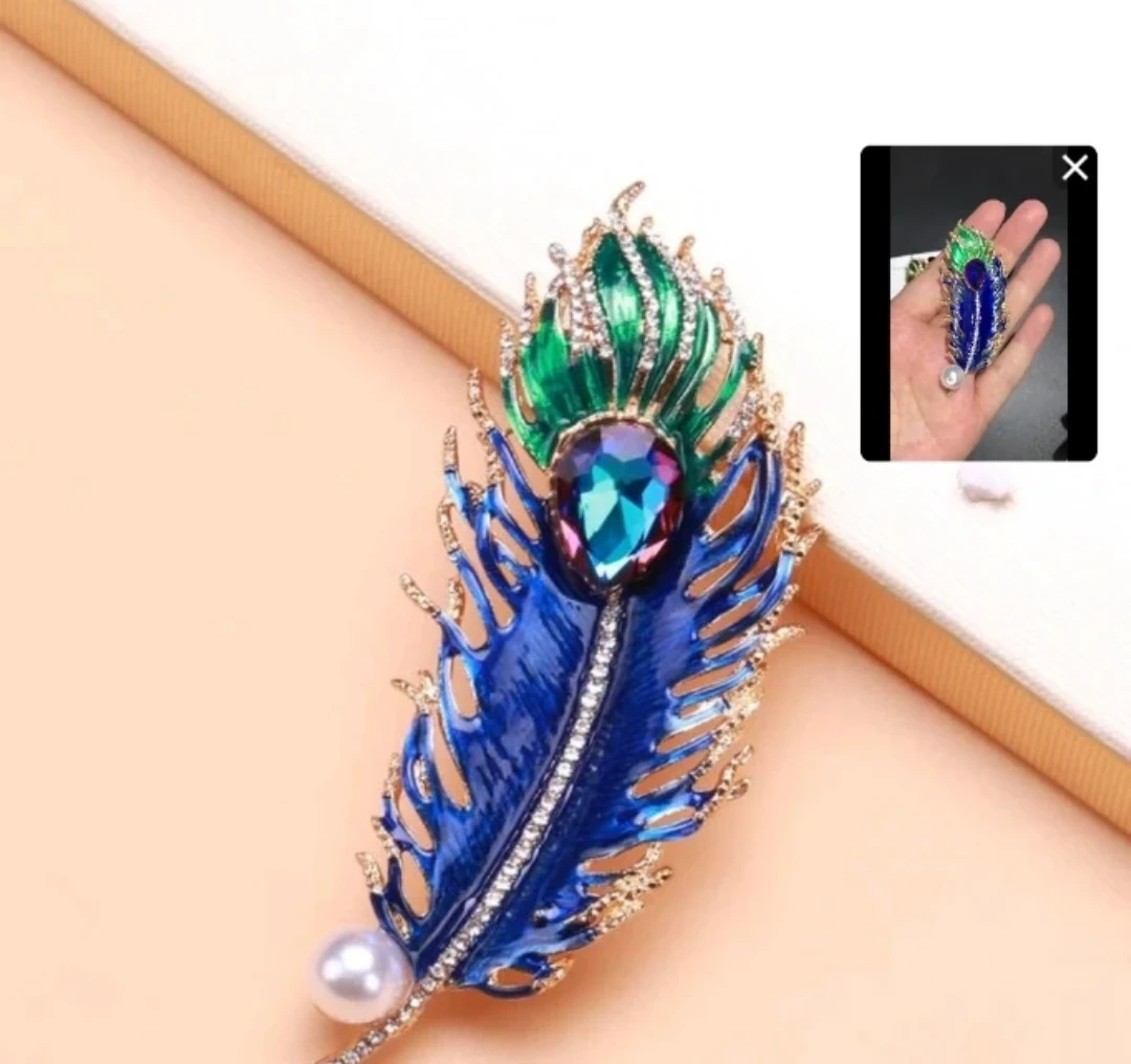Peacock Feather Rhinestone Brooch