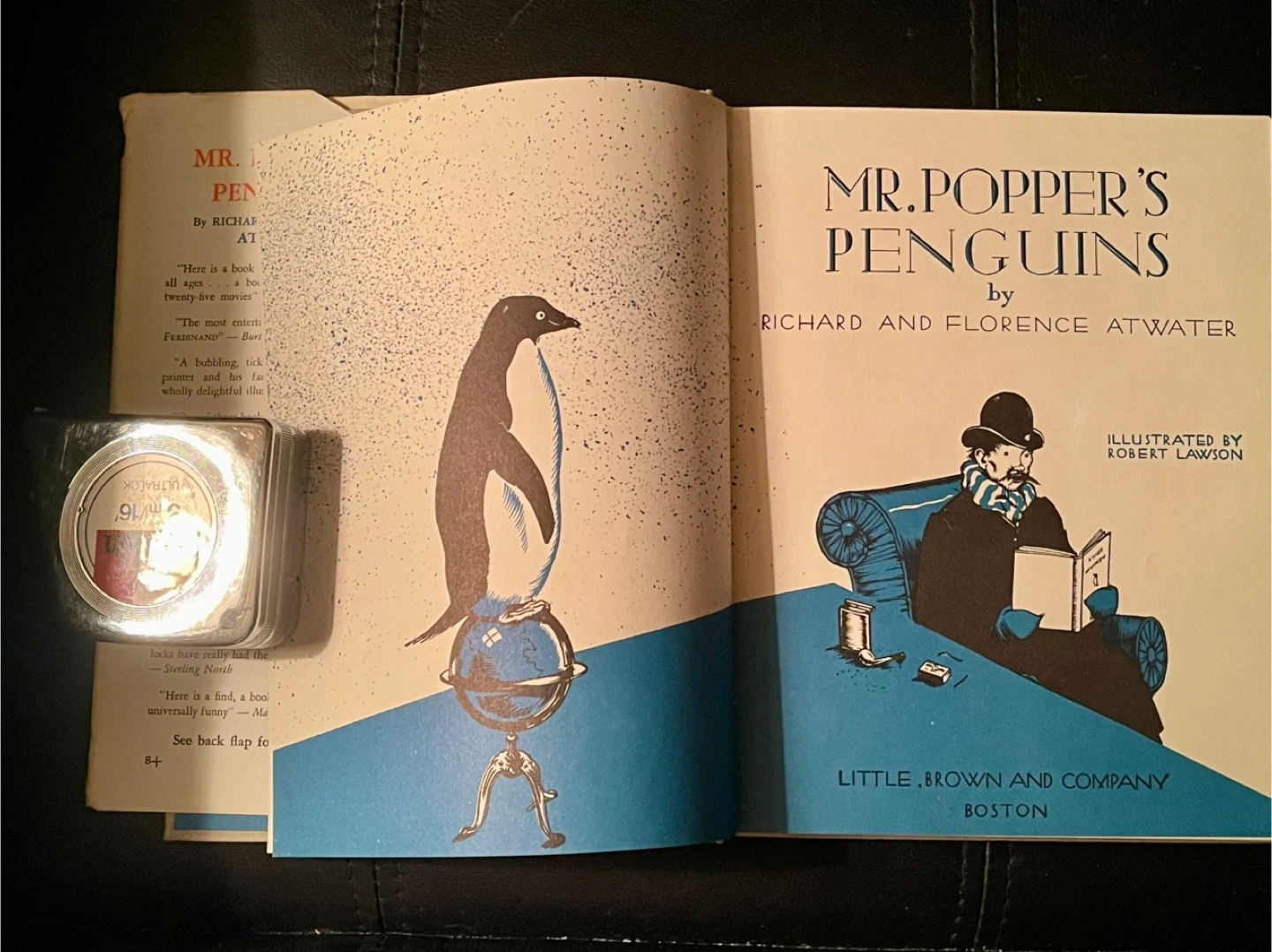 Classic children's book "Mr. Popper's Penguins" by Richard and Florence Atwater. This vintage hardcover is illustrated by Robert Lawson and published by Little, Brown and Company, Boston. It features charming black and white illustrations throughout the story. Copyright 1938. 43rd edition. Good to very good condition.