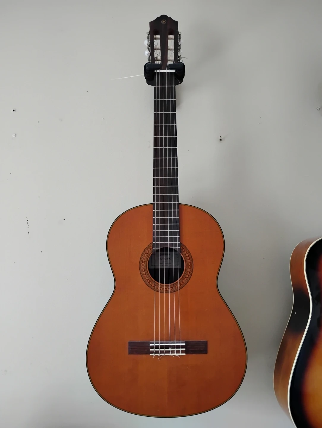 Yamaha classical guitar for sale with wall hanger.
