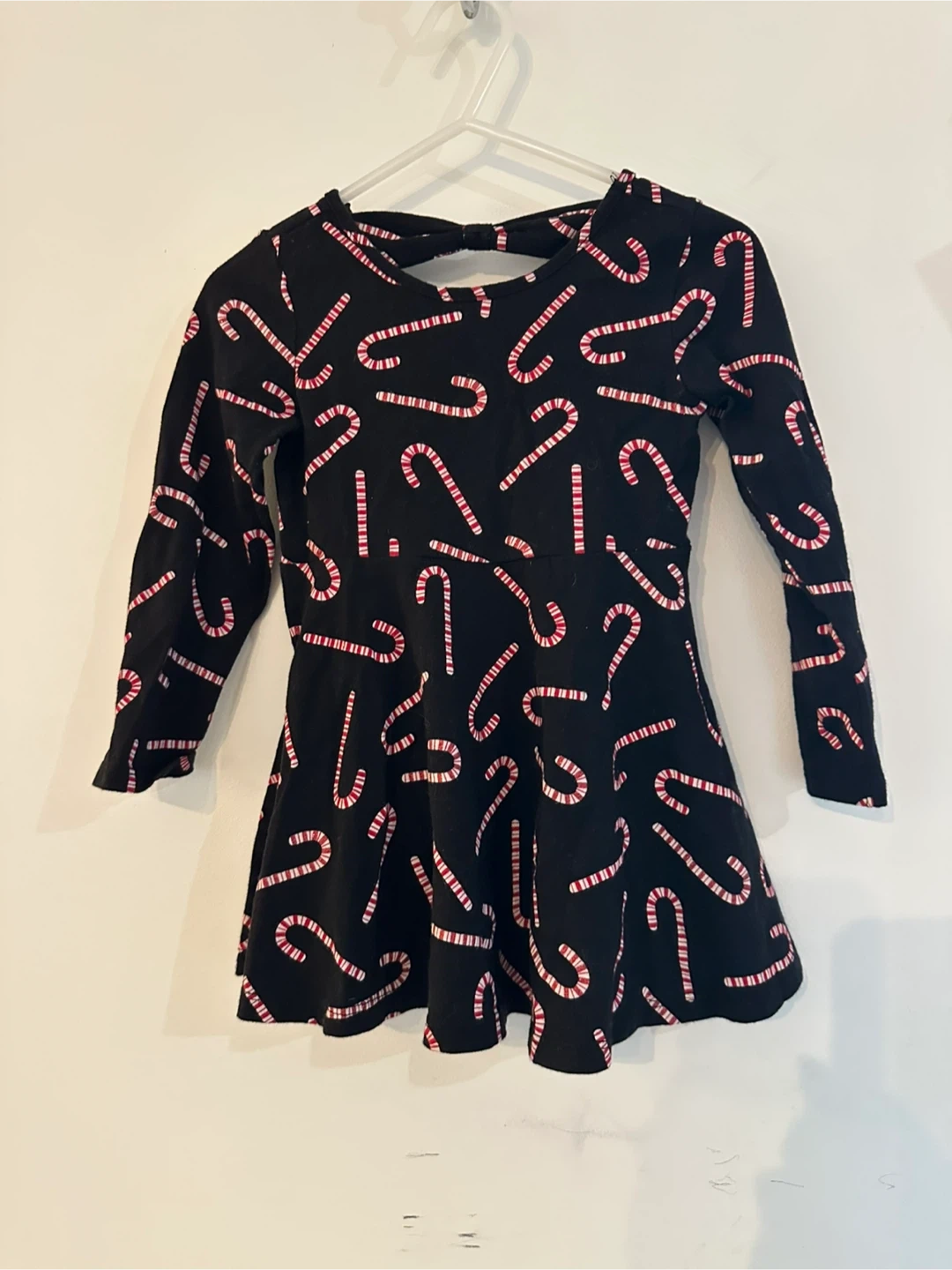 14Cute girl's dress with a fun candy cane pattern! It's black with red and white candy canes all over. Perfect for the holidays or any time of year!