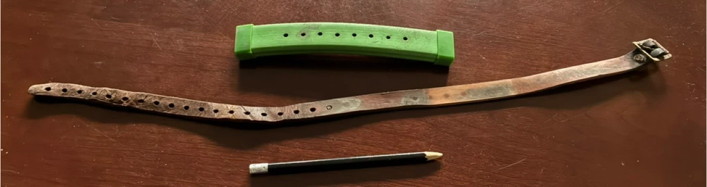 3.00 for narrow leather dog collar with added green rubber foam soft padding that can be left on or easily taken off