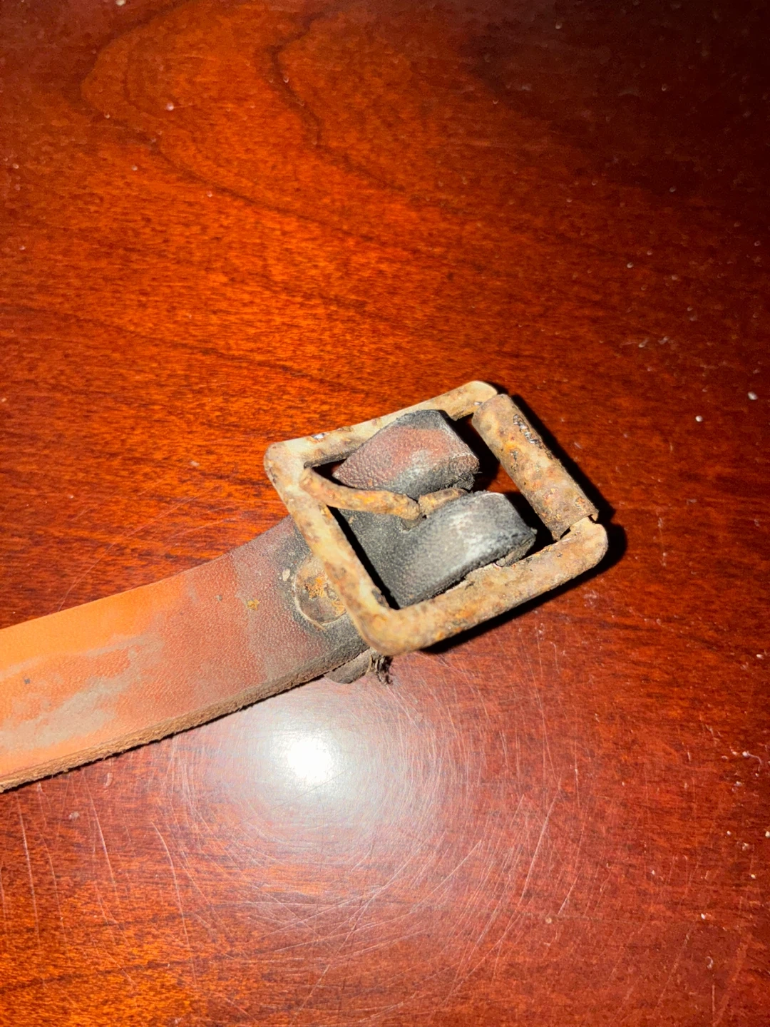 $3.00 dog collar 21 inches long leather and padded section Donlands O'Connor & maple leafs hockey