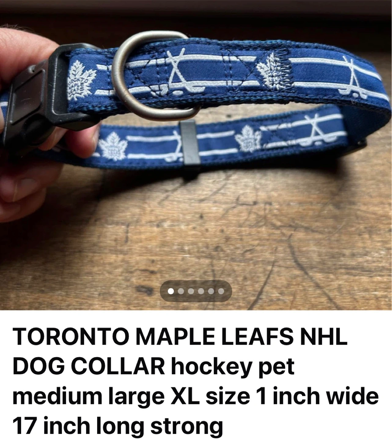 TORONTO MAPLE LEAFS NHL DOG COLLAR hockey pet medium large XL size 1 inch wide 17 inch long strong