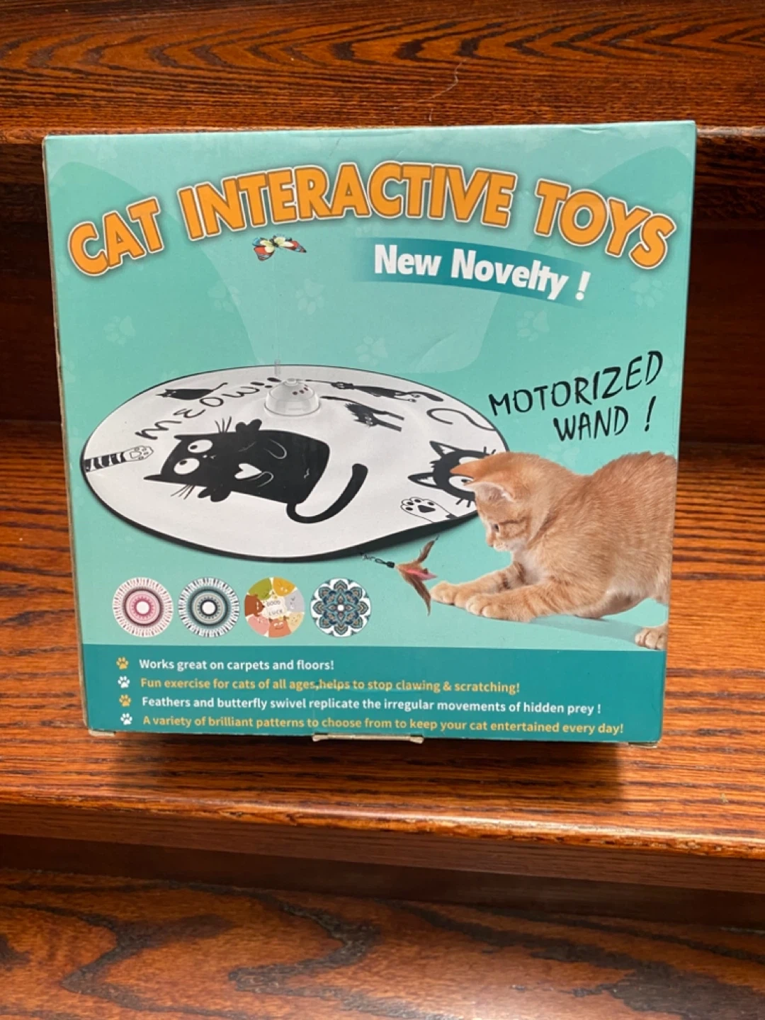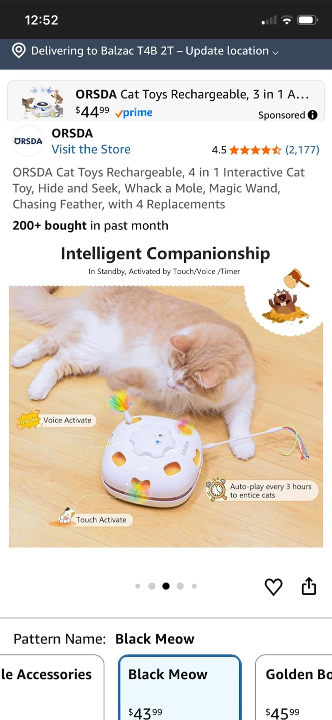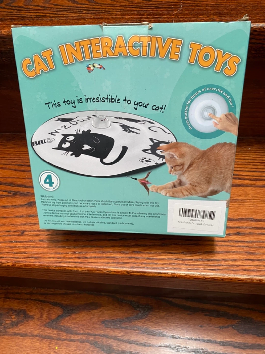 This ORSDA 4-in-1 interactive cat toy is rechargeable and offers multiple play modes including Hide and Seek, Whack a Mole, and Magic Wand. It comes with 4 replacements. Features include touch/voice activation and an auto-play timer. It's great for keeping your cat entertained!