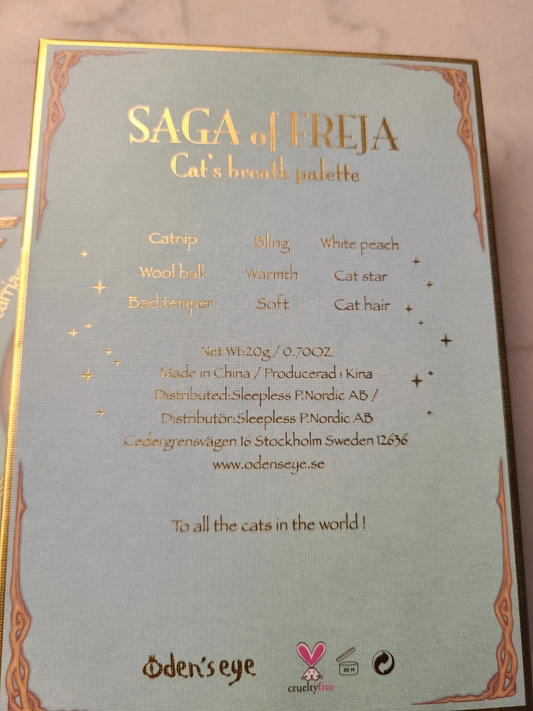 Oden's Eye Saga of Freja Cats Breath eyeshadow palette features nine shades. It's a great addition for any makeup collection!
