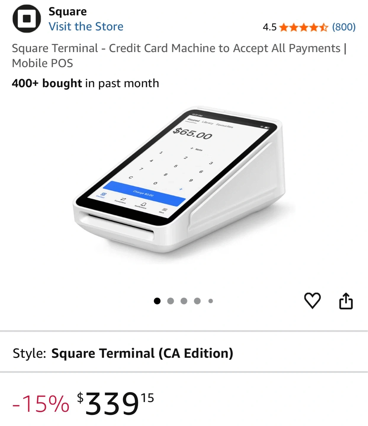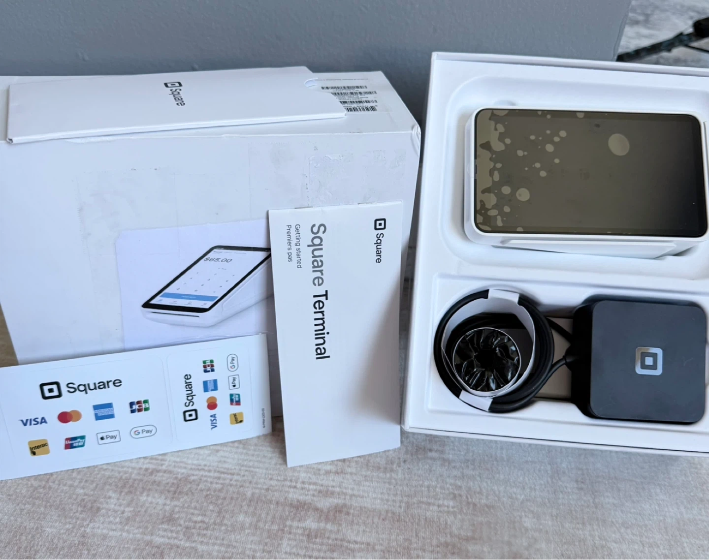 Accept all payments with this Square Terminal. It's designed for quick and easy transactions. Comes with the terminal, power adapter, and charging cord.