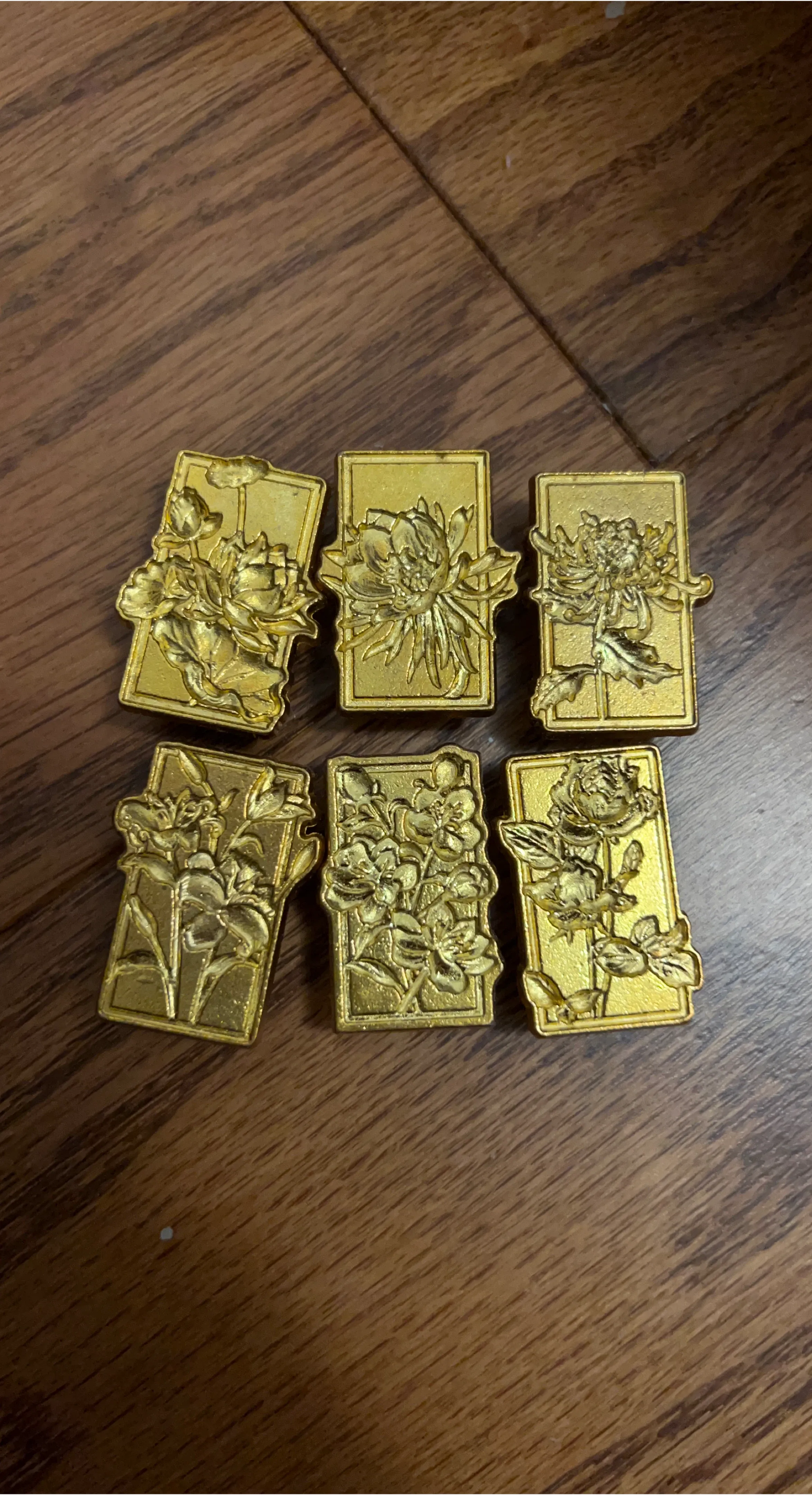 A set of six gold-tone wax seal stamp heads featuring detailed floral designs. Works with majority of stamp handles and showcases beautiful wax stamp designs.