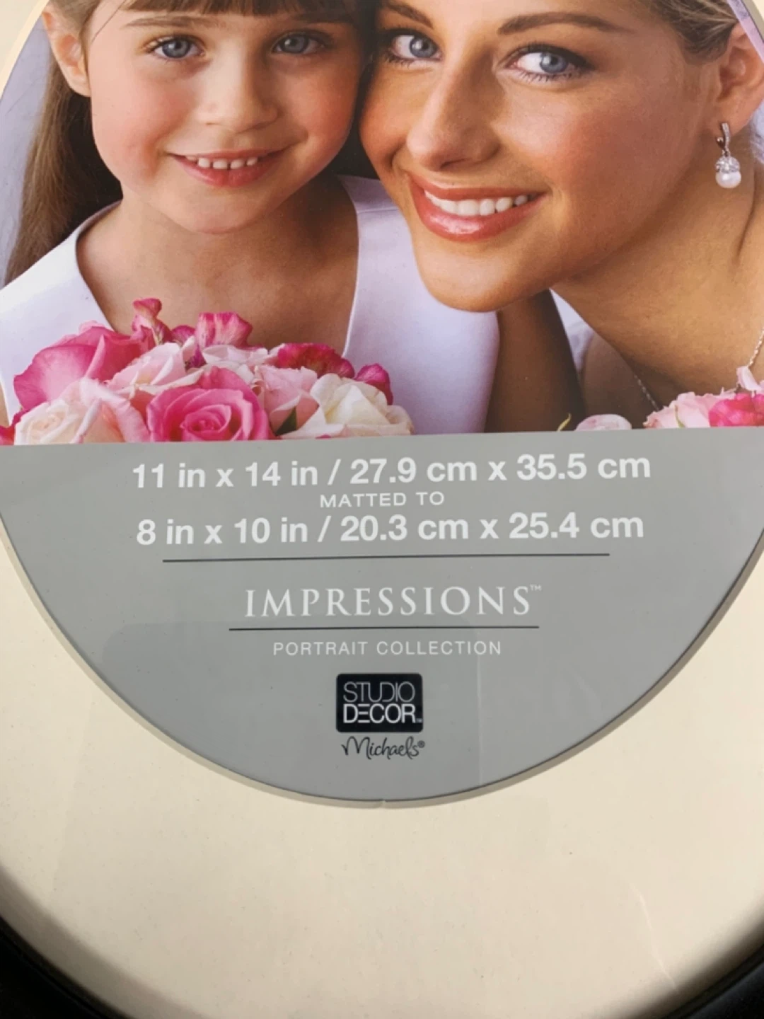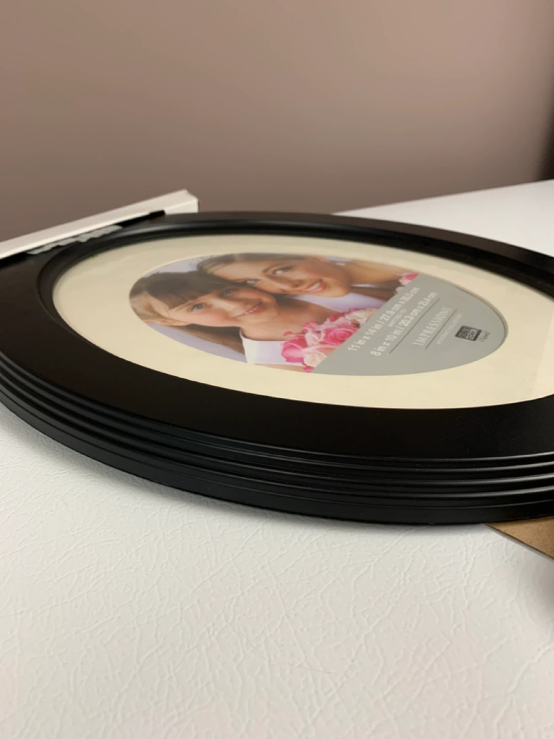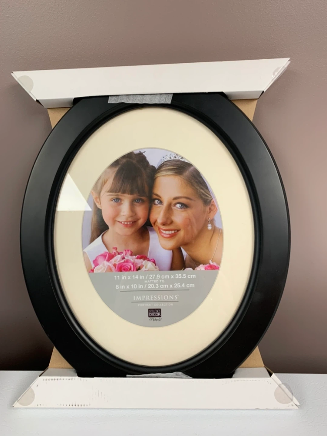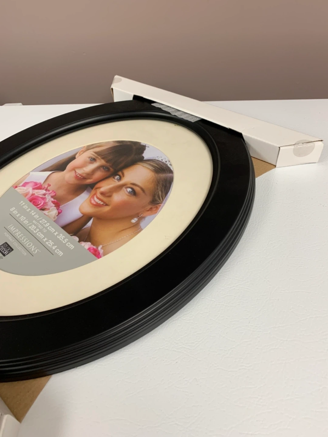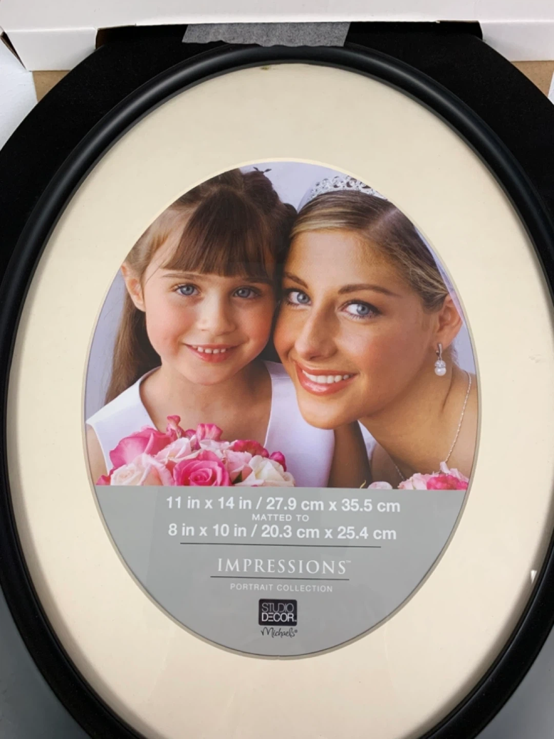 New Impressions Oval photo frame, black. Holds an 11 x 14 inch photo matted to 8 x 10 inches. Includes original packaging.