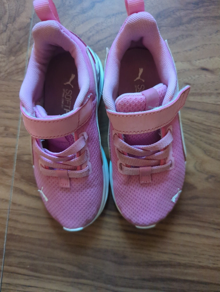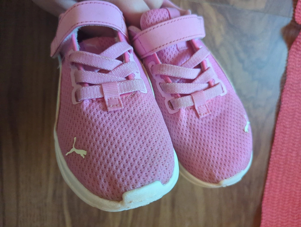 Pink running shoes with Velcro closures , memory foam inside the shoes.