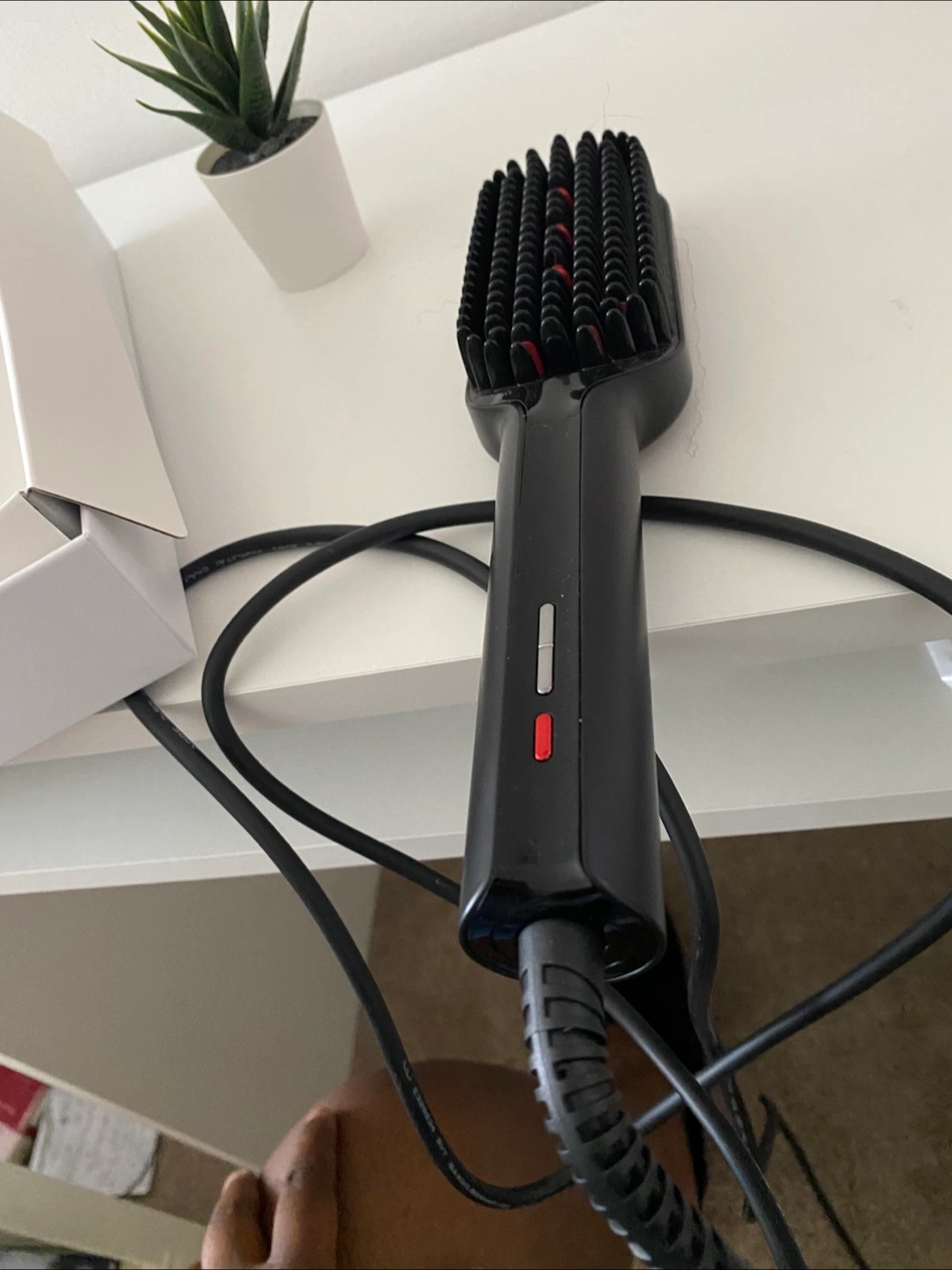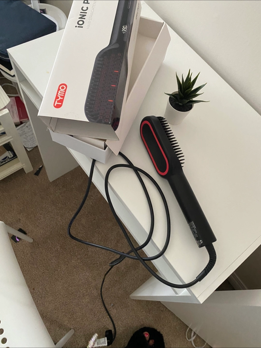 Selling a TYMO Ionic Plus hair straightening brush. It's in great condition and comes with the original box. This brush is designed to straighten hair quickly and efficiently, leaving it smooth and shiny. If you're looking for an easy way to style your hair, this could be perfect for you!