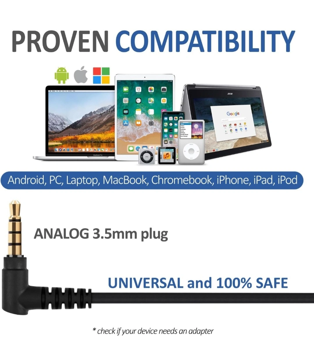 Standard Plug: Our apple headphones wired support new generation iPhones via lightning adapters (not included), iPhone 5 and 6, iPad Mini/Air, Samsung S8/S9/S10, Galaxy M02s/F02s, M62/F62, A32/A52/A72, Note 8/9/10, iPod touch, and true value headphones wired with a 3.5 mm jack. The cable is 4.2ft/1.3m long