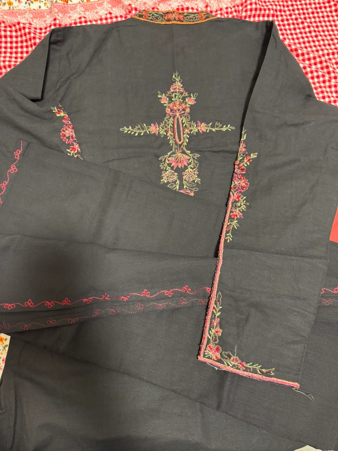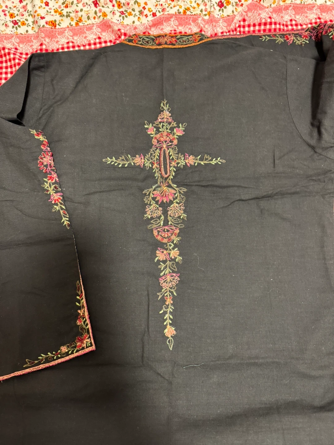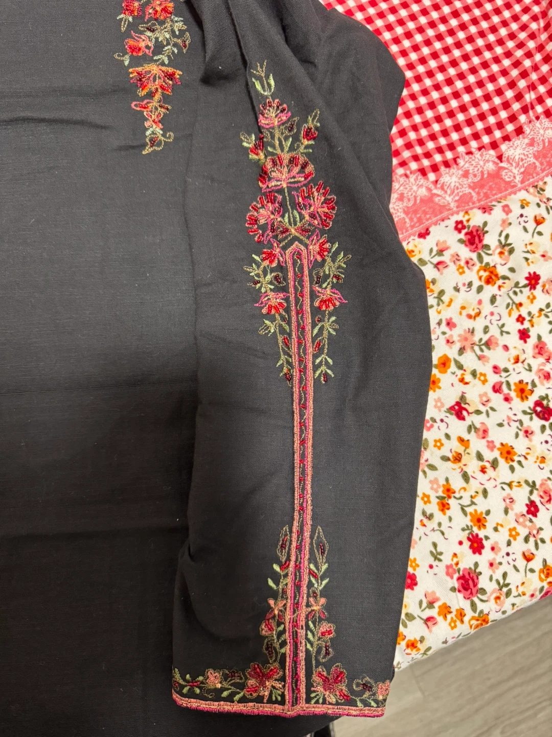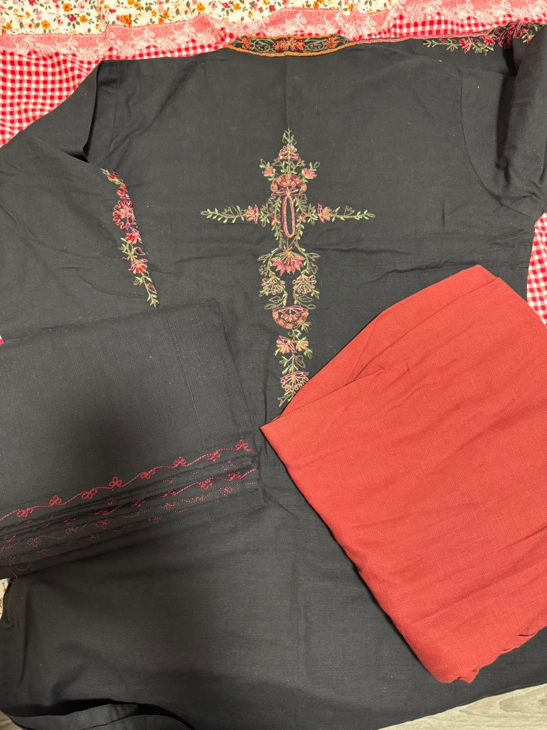 Black Kurti with Floral Embroidery dupatta and pant