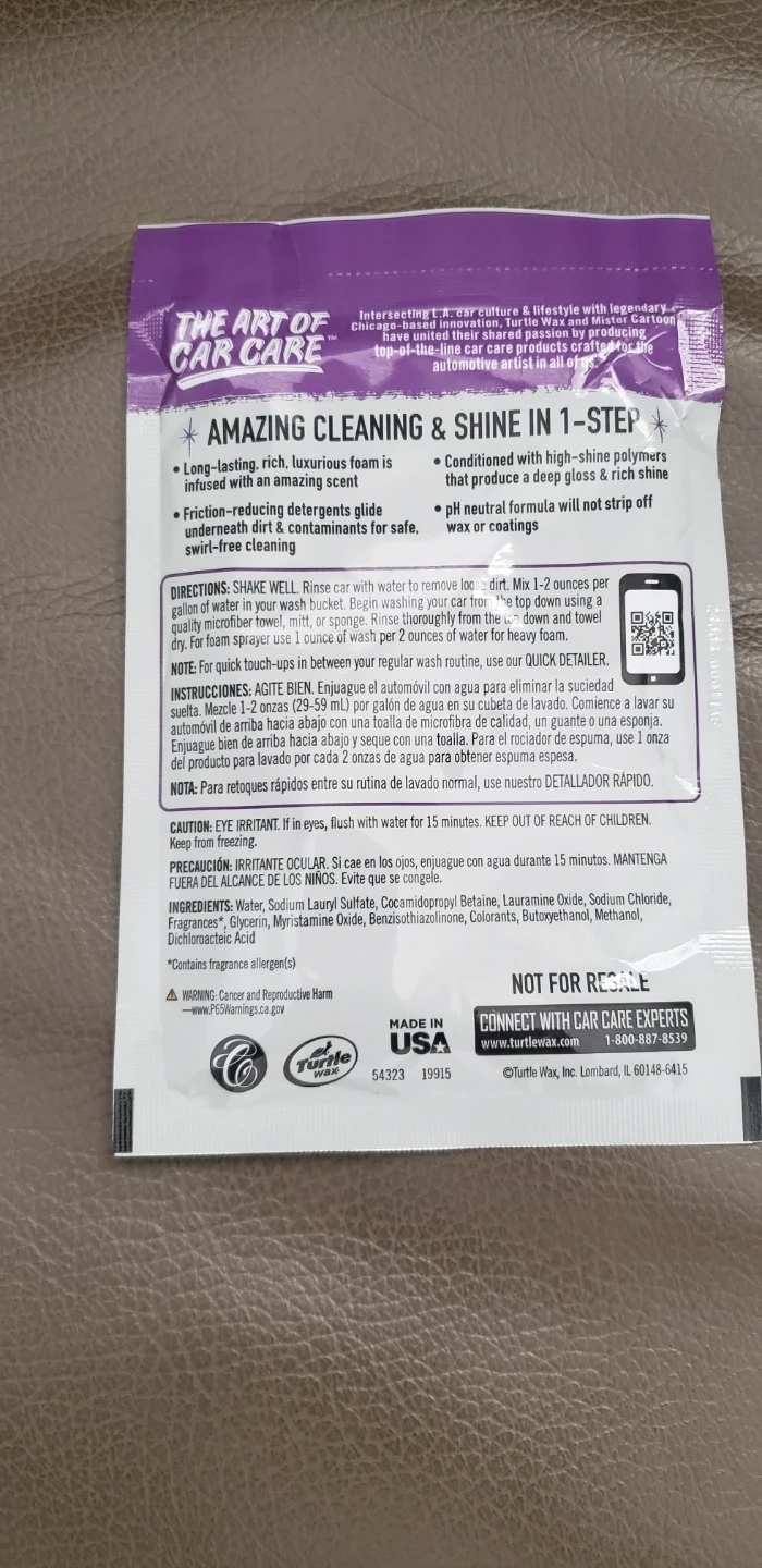 This 4-pack of turtle Slick Wash & Wax offers a long-lasting, rich, luxurious foam. It provides swirl-free cleaning and a high shine. Each packet contains 1 oz (29.5 ml) for car washing.