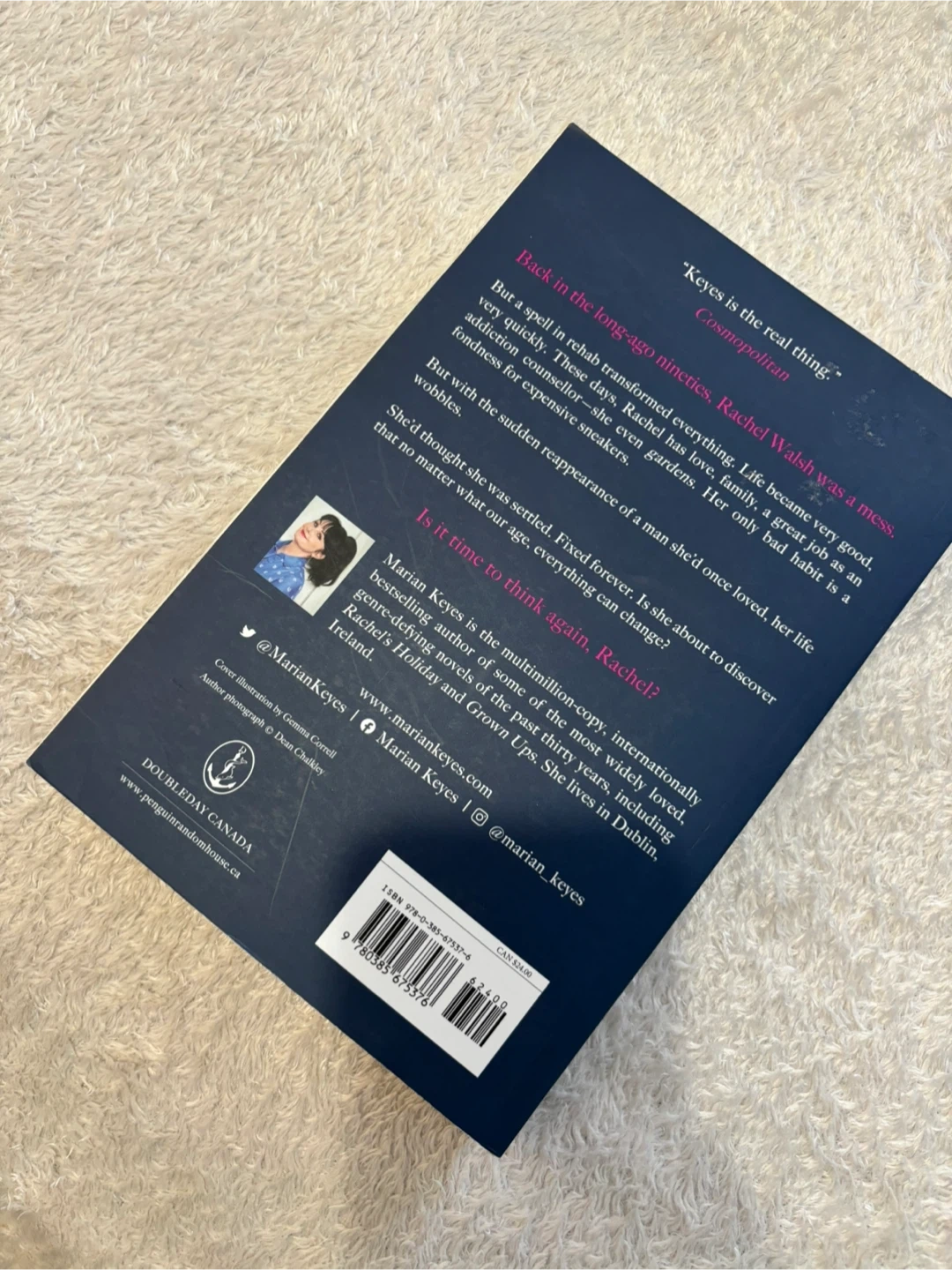 This is Marian Keyes' novel, Again, Rachel. It's about Rachel Walsh's life transforming after a spell in rehab. The book was published by Penguin Random House Canada.