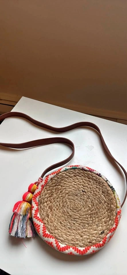 Buy & SellHandcrafted Circular Jute Sling BagHandcrafted Circular Jute Sling Bag$20Circular sling bag, nicely fits a phone, makeup pouch, keys, and sunglasses. Perfect for a beach day out.WHERE TO MEETCheck LocationView MapSELLERAarushiW End100 reviews0 chats·0 favorites·2 viewsSEND CHAT TO SELLERHi Aarushi! I’m interested in your listing.Hi Aarushi! I’m interested in your listing.Get the Karrot app to chatSign In to chat