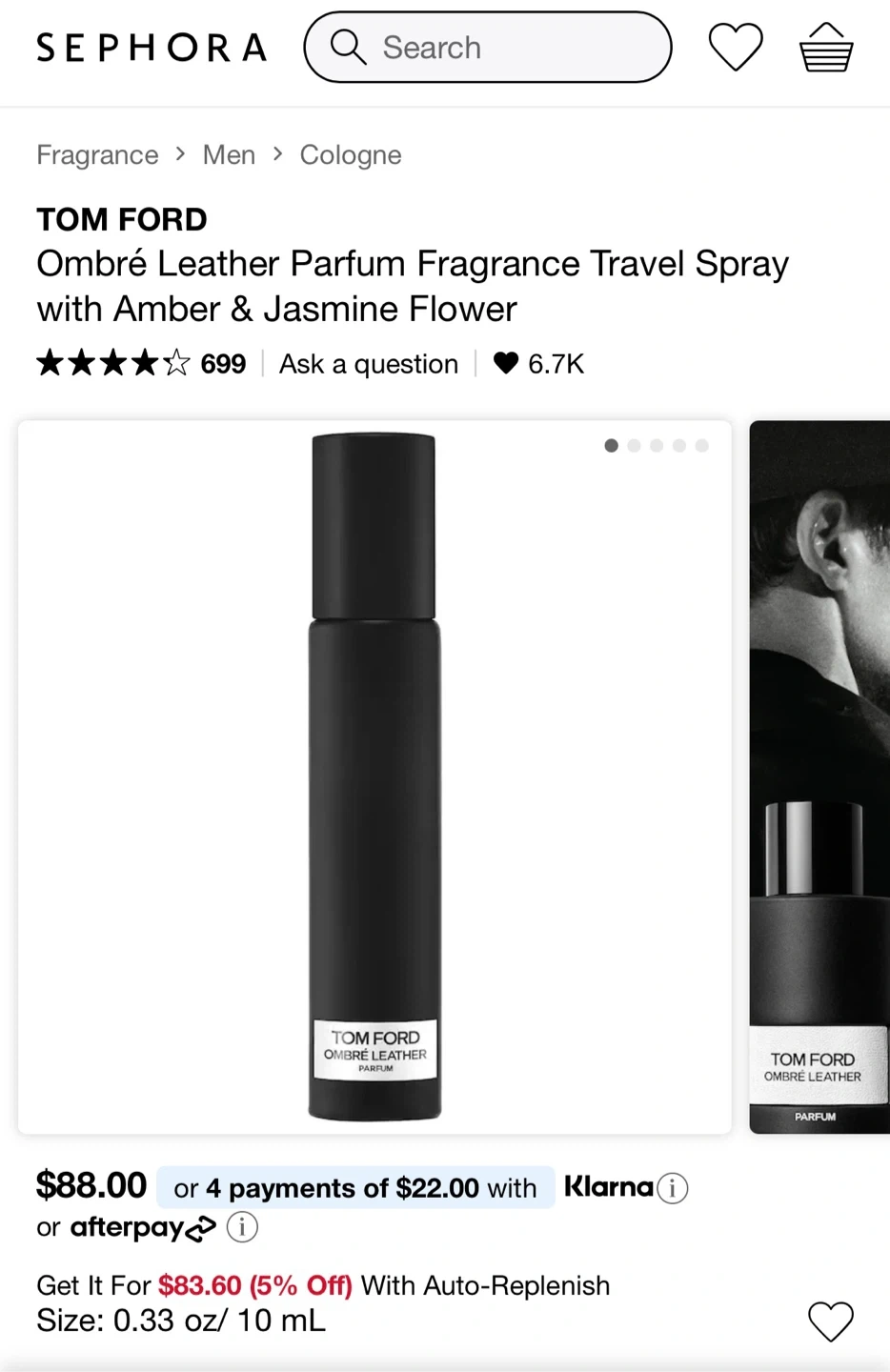 Ombré Leather Parfum fragrance travel spray by Tom Ford. Includes original box. Size 0.33 oz/ 10 mL.