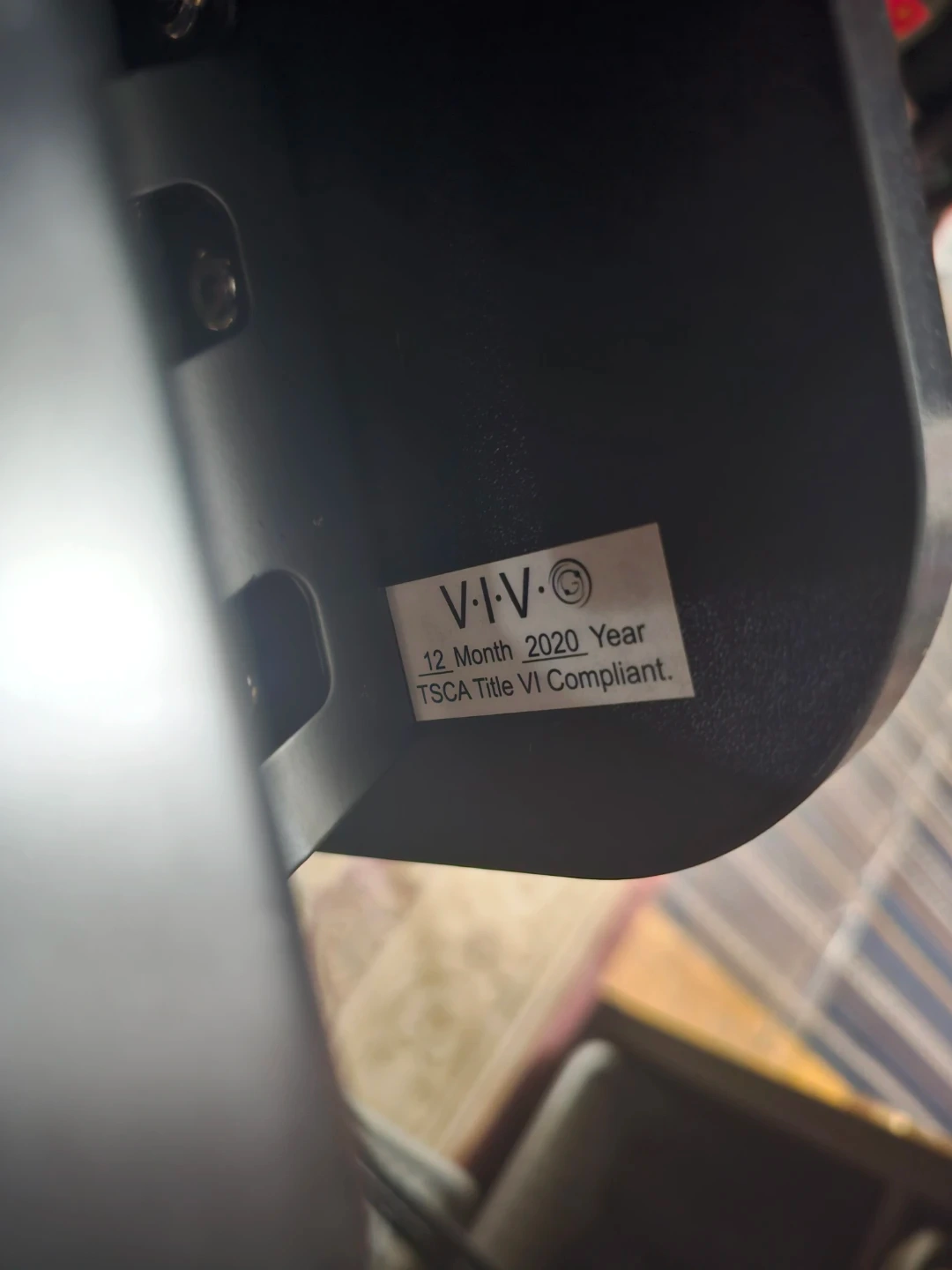 This is a VIVO standing desk converter, black. It has a gas spring for easy adjustment. TSCA Title VI Compliant. Made in December 2020.