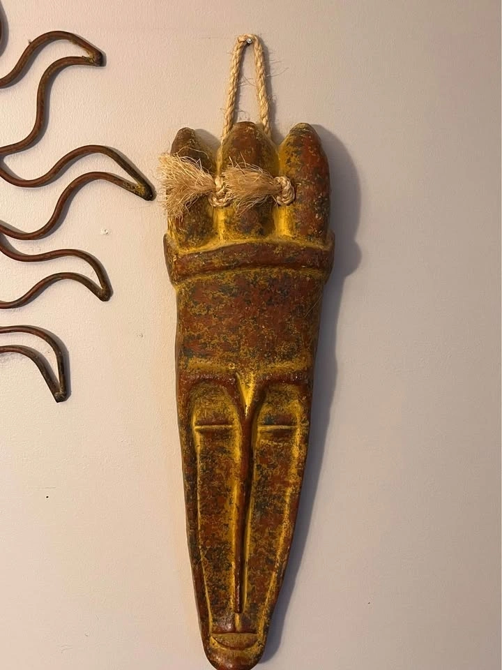 Heavy clay and metal sun wall decor and heavy southwestern mask wall decor. Excellent condition. Sun is 21” wide x 21” high. Mask is 19” high x 6” wide. $30 each or best reasonable offer.