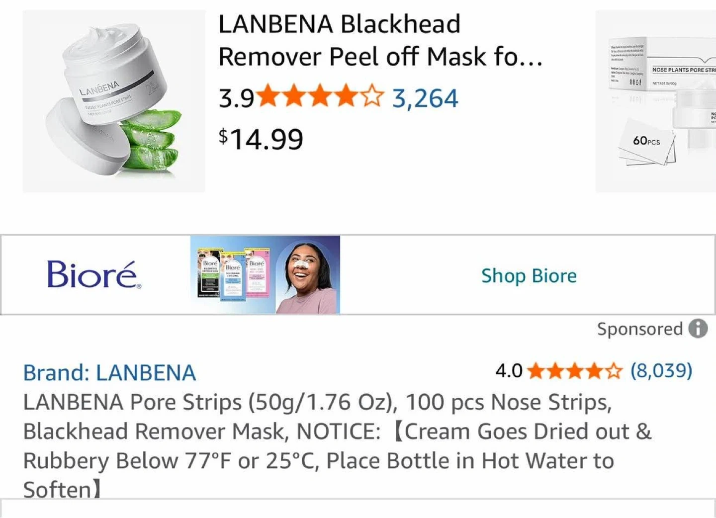 LANBENA Nose Plants Pore Strips in a 50g container. Comes with a pack of pore strips. These are designed for blackhead removal.
