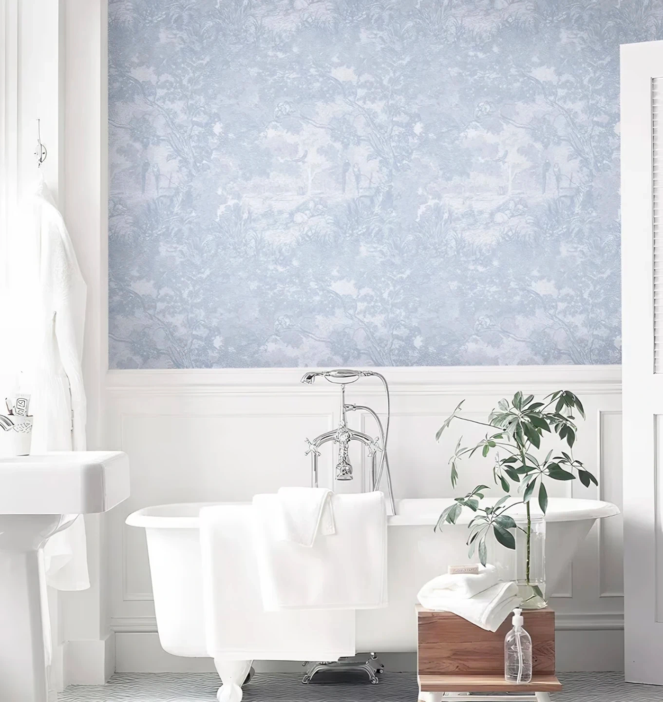 Peel & Stick Blue White Forest Floral Wallpaper 17.3" X 78.7"