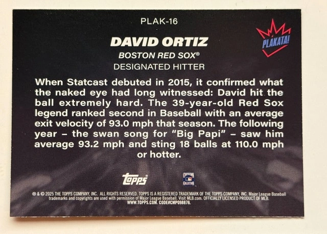 2025 Topps David Ortiz "Big Papi" Plakata! SSP #PLAK-16