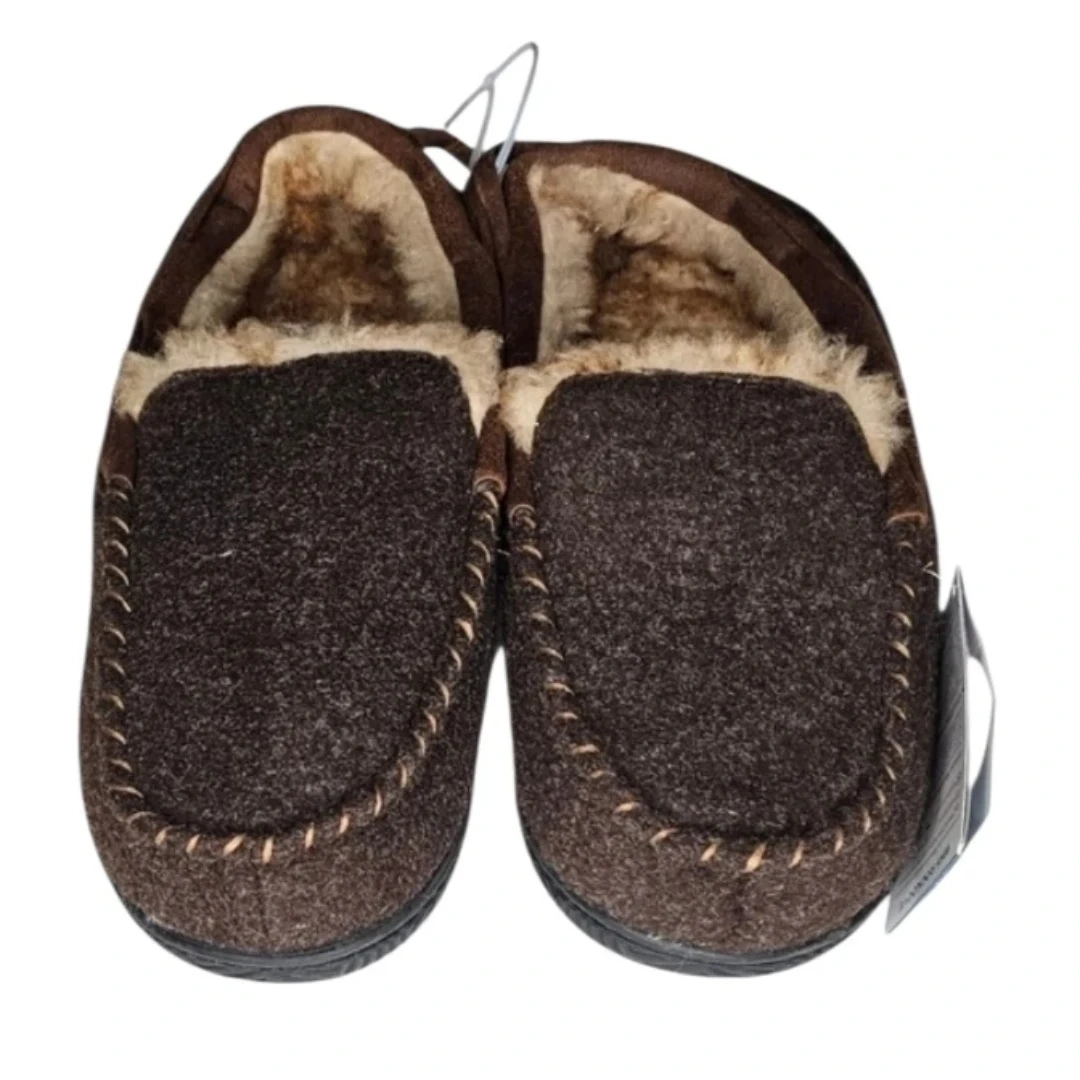 Brown Moccasin-style Slippers w Faux Fur Lining