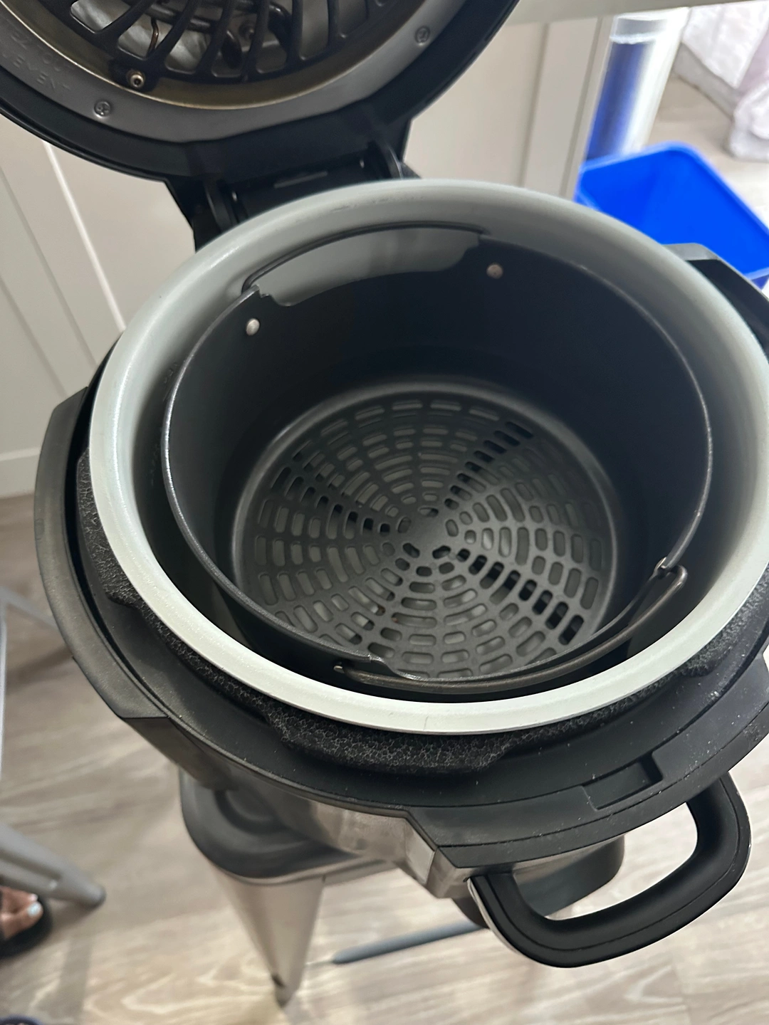 6.5-qt cooking pot and 4.6-qt Cook & Crisp Plate are both nonstick and dishwasher safe.
