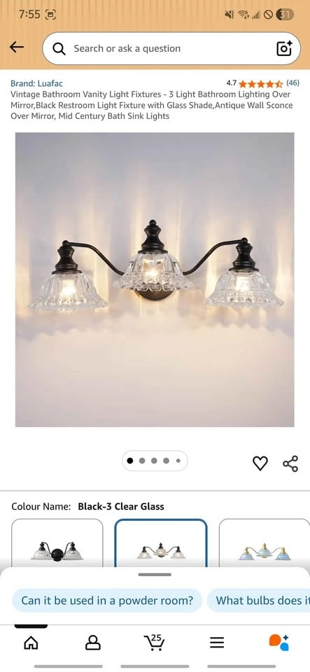 This vintage-style 3-light bathroom vanity fixture was received as a gift, but it doesn’t match our decor, so we’re selling it. It is brand new and in perfect condition. It's a 3-light vanity fixture for over-mirror installation with a black metal finish and clear glass shades. The style is vintage, farmhouse, or mid-century, and it looks great with warm or Edison-style bulbs. Ideal for a bathroom or powder room. Pickup preferred. Cash or e-transfer accepted.