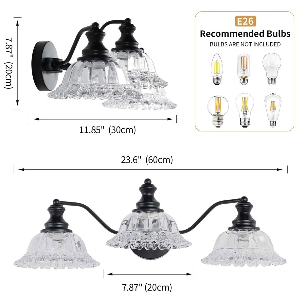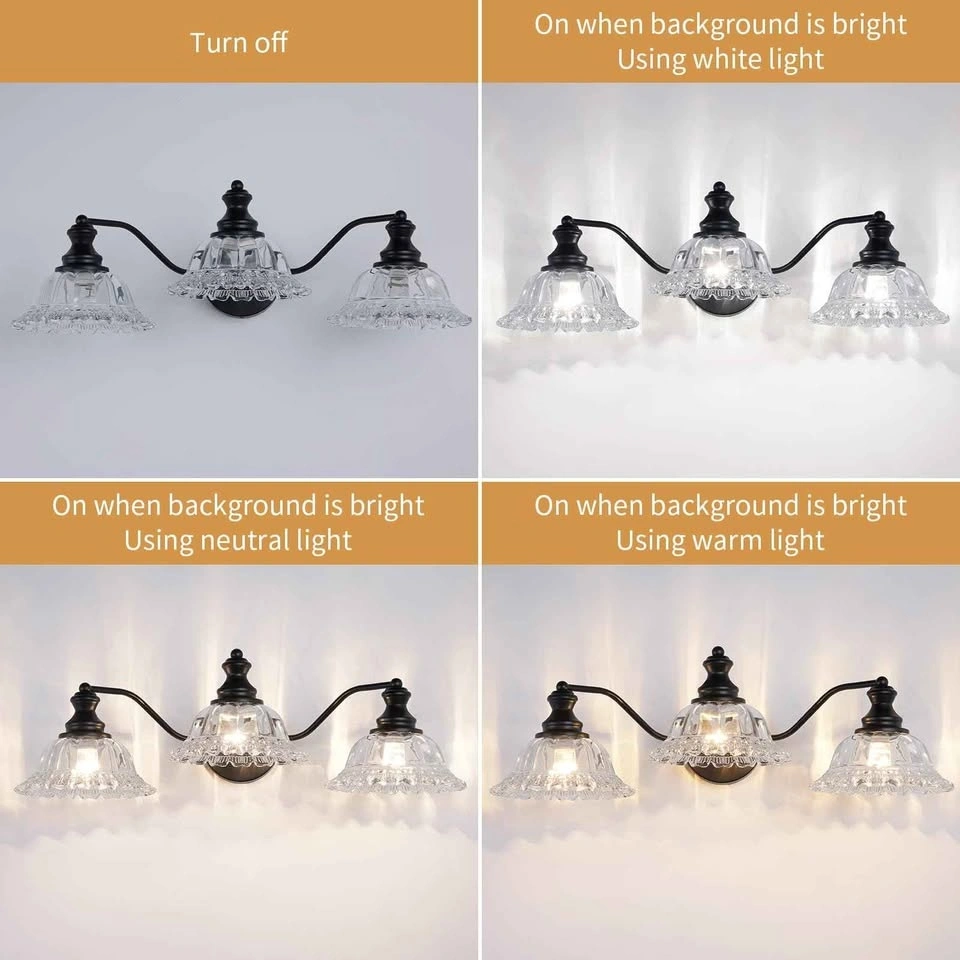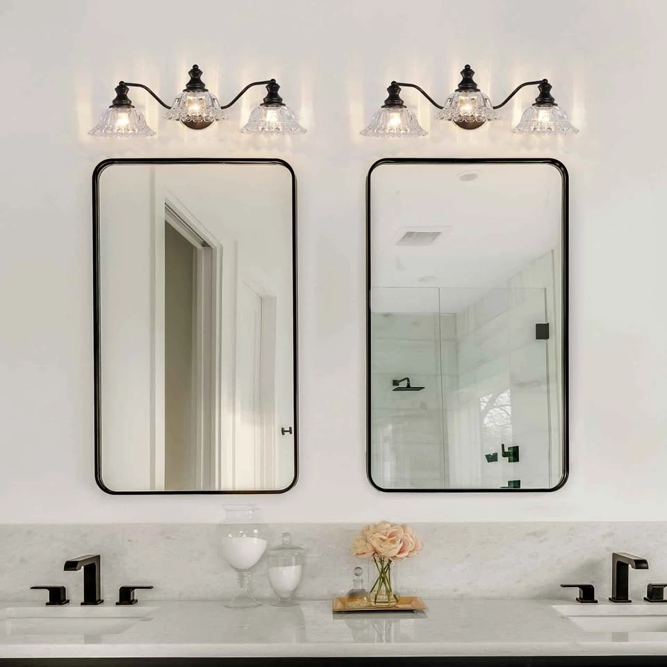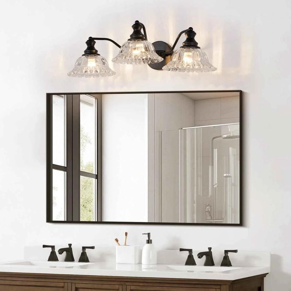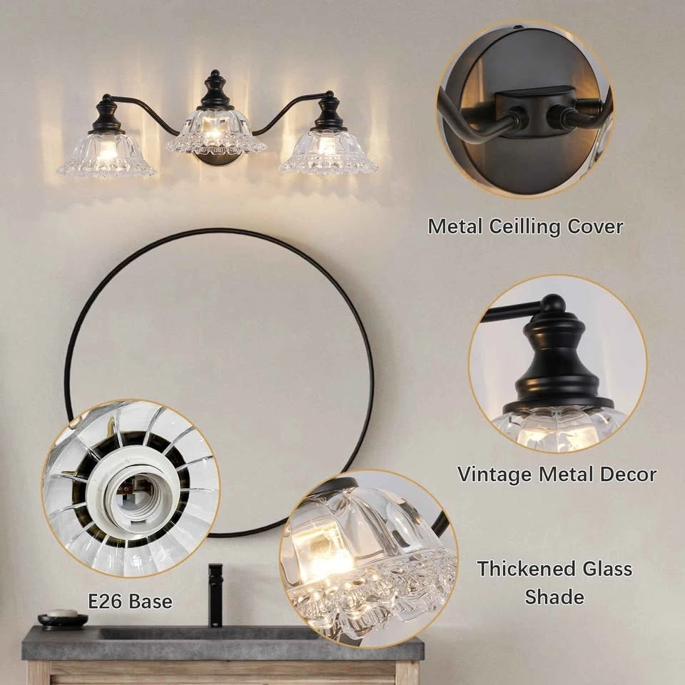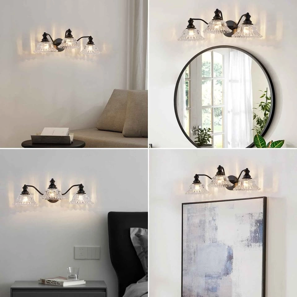 Vintage 3-Light Bathroom Vanity Light - Black/Clear Glass