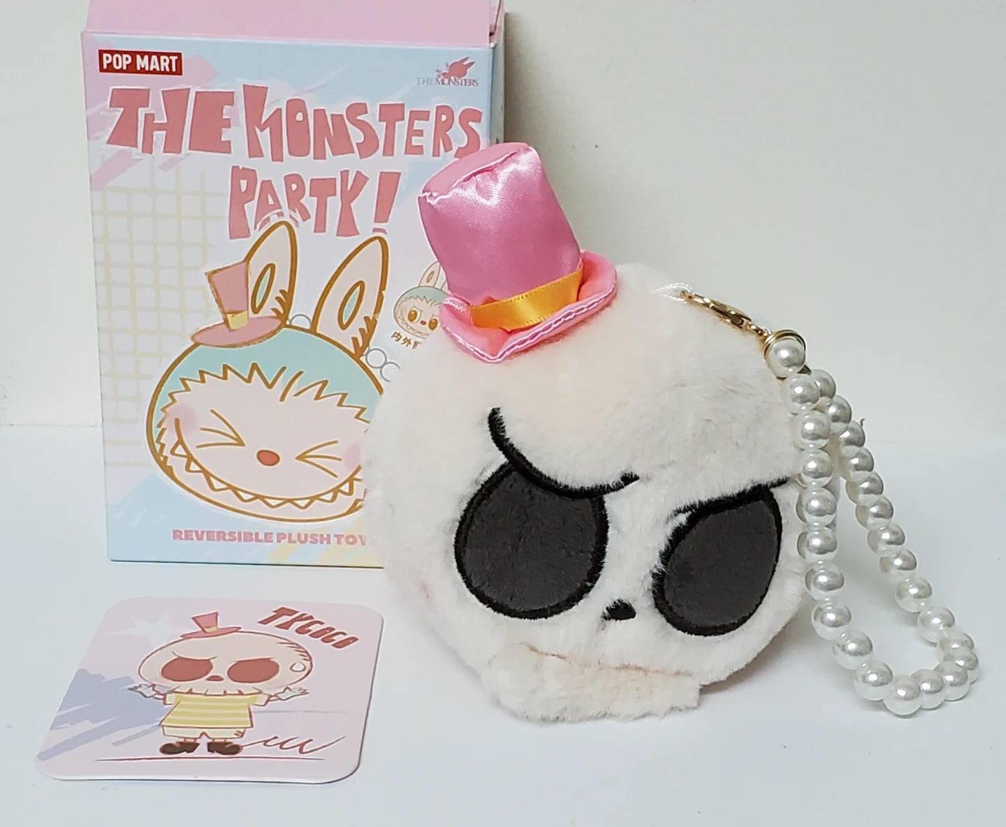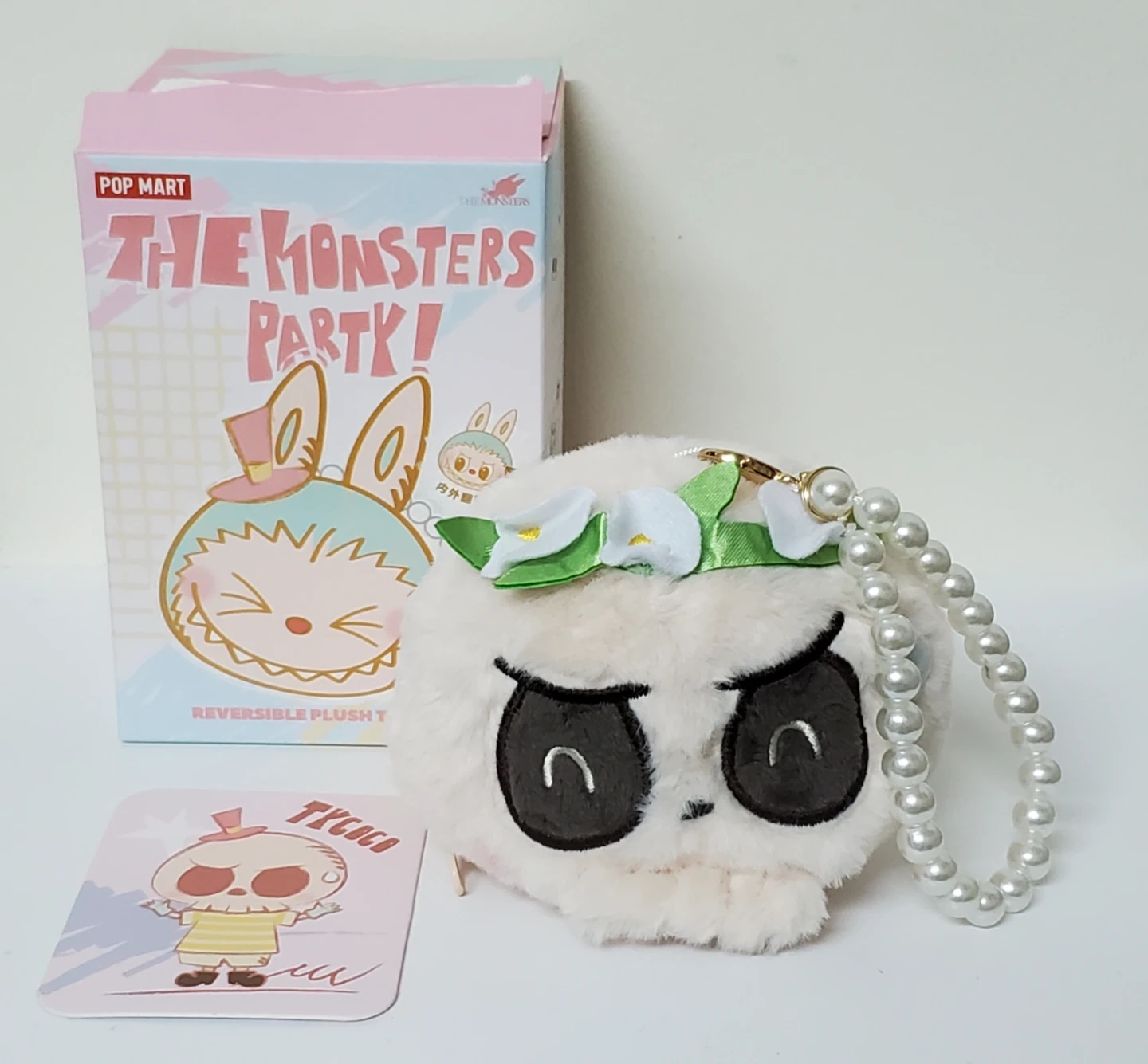 This authentic POP Mart Tycoco plush toy is reversible and comes with a pearl wrist strap. It's a cute and unique accessory for fans of the series. The plush is soft and fuzzy, with embroidered details. Includes original box and a collectible card.