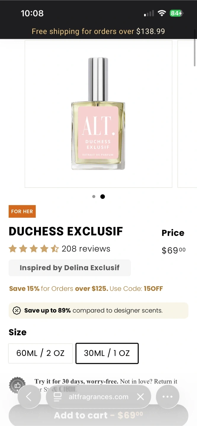 ALT. Fragrances Duchess Exclusif, inspired by Parfums de Marly Delina Exclusif. This luxury-inspired extrait de parfum delivers a rich, feminine, elegant scent at a fraction of the designer price. Only sprayed once to test — essentially brand new.