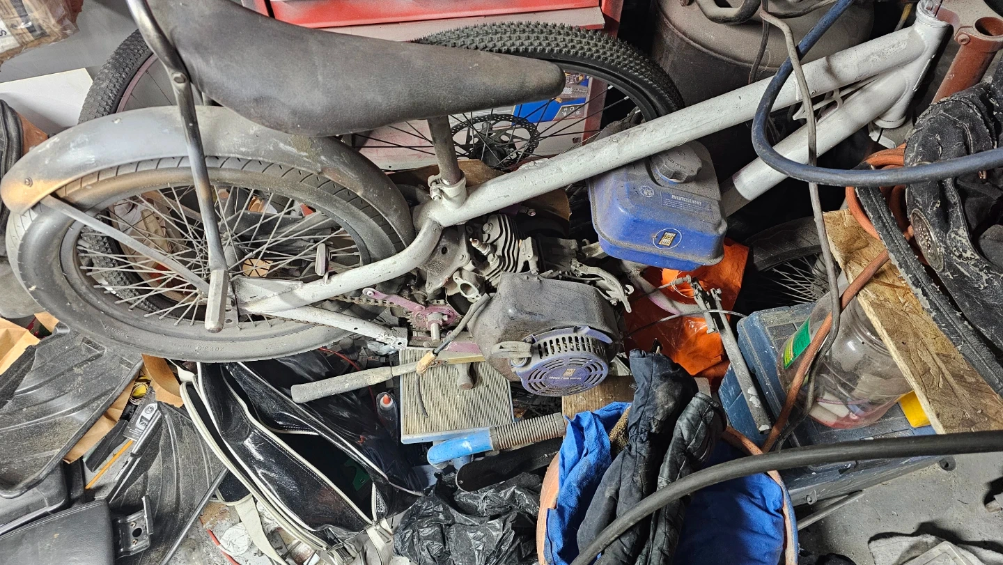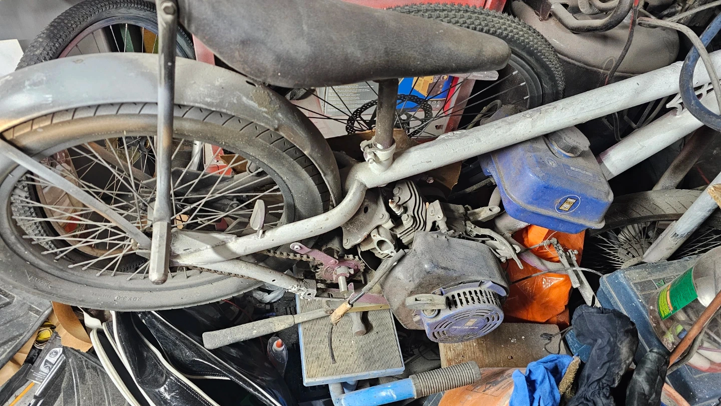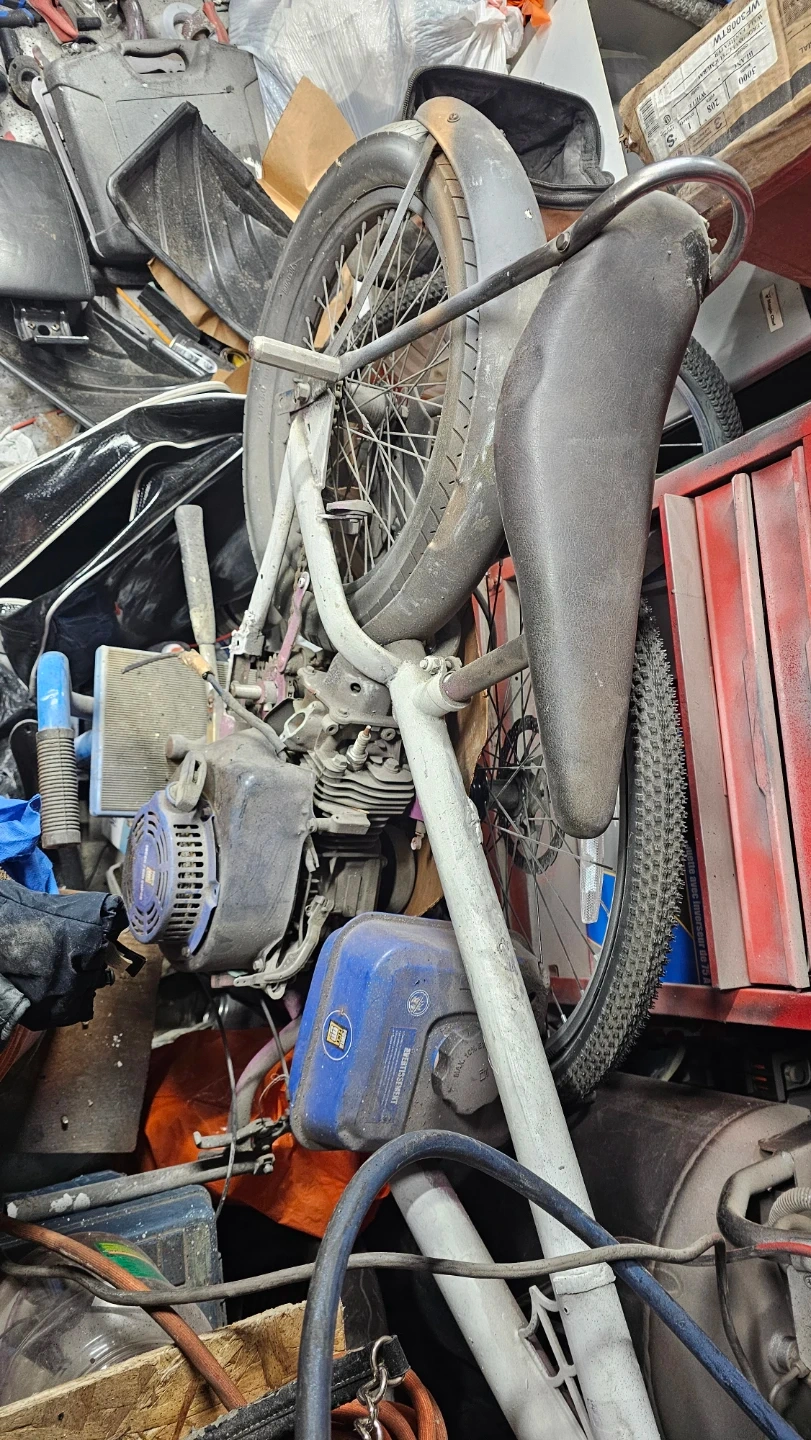 This mini bike has a gas engine. Its not missing any parts and but needs some work. I can show what needs to be done to the person which buys. Its a work in progress but out come will be one rad bike The frame is white and the classic banana seat with extended forks. I ran out of space and ran outa time. So im selling for a must go offer of 100$ o.b.o. that i will not refuse well be fair. ๐ engine runs chain lined proper. Just needs love and a person with creativity. Im sure it will go fast so 1st come first serve. Any fair offer.