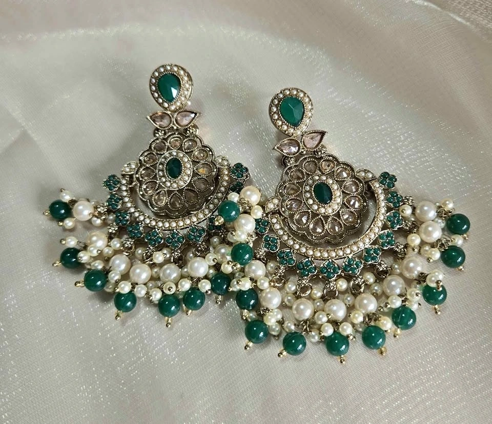 Add a touch of elegance to your look with these intricate Indian statement earrings. Perfect for festive occasions, weddings, or special celebrations, these earrings feature detailed craftsmanship and a charming design that complements any outfit. Lightweight and stylish, they make a wonderful gift for yourself or someone special.