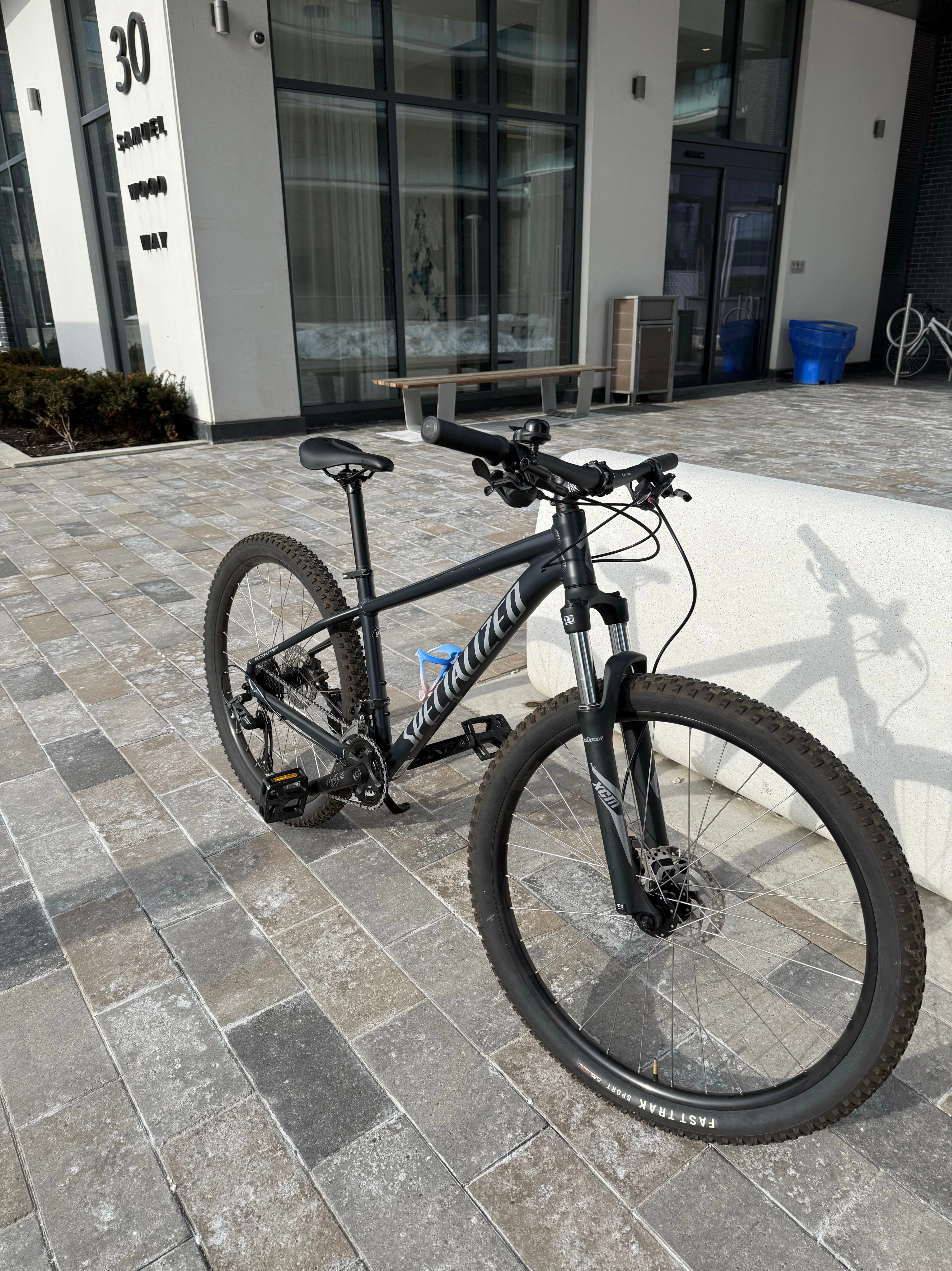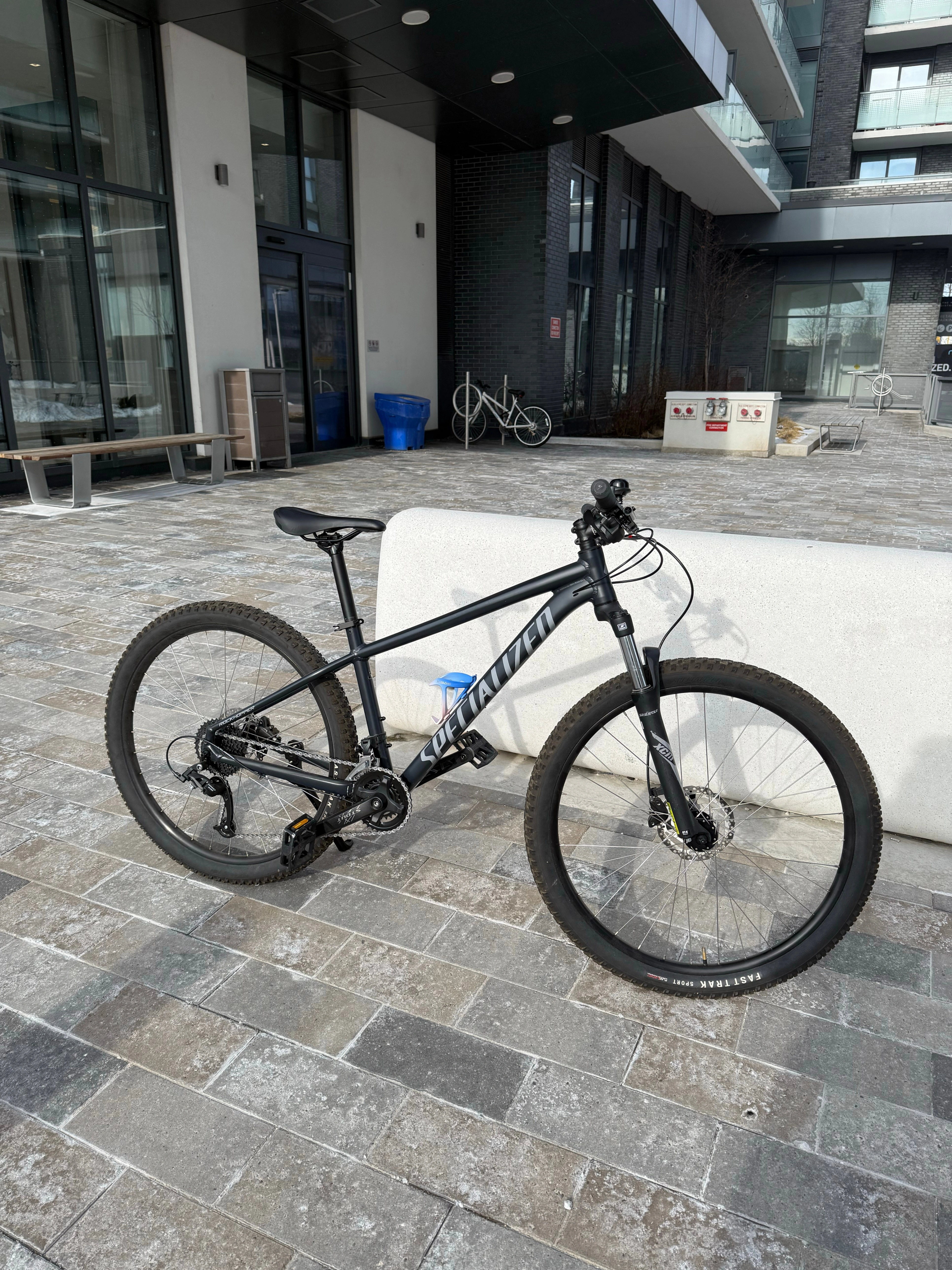 Specialized Rockhopper Sport 27.5 – M Size Purchased last year. In excellent condition. There is a small scratch on the frame (visible in the photo). Just had a full service at The Bike Zone — completely ready to ride, everything works perfectly. Accessories included for free: • Kickstand • Bell • Water bottle holder • Bike lock Great bike for city rides or light trails. If you need additional photos or videos, feel free to message me — I’ll send them. 📍 Pickup only near Kipling Station. 💲 450