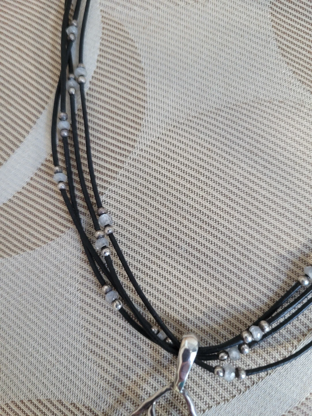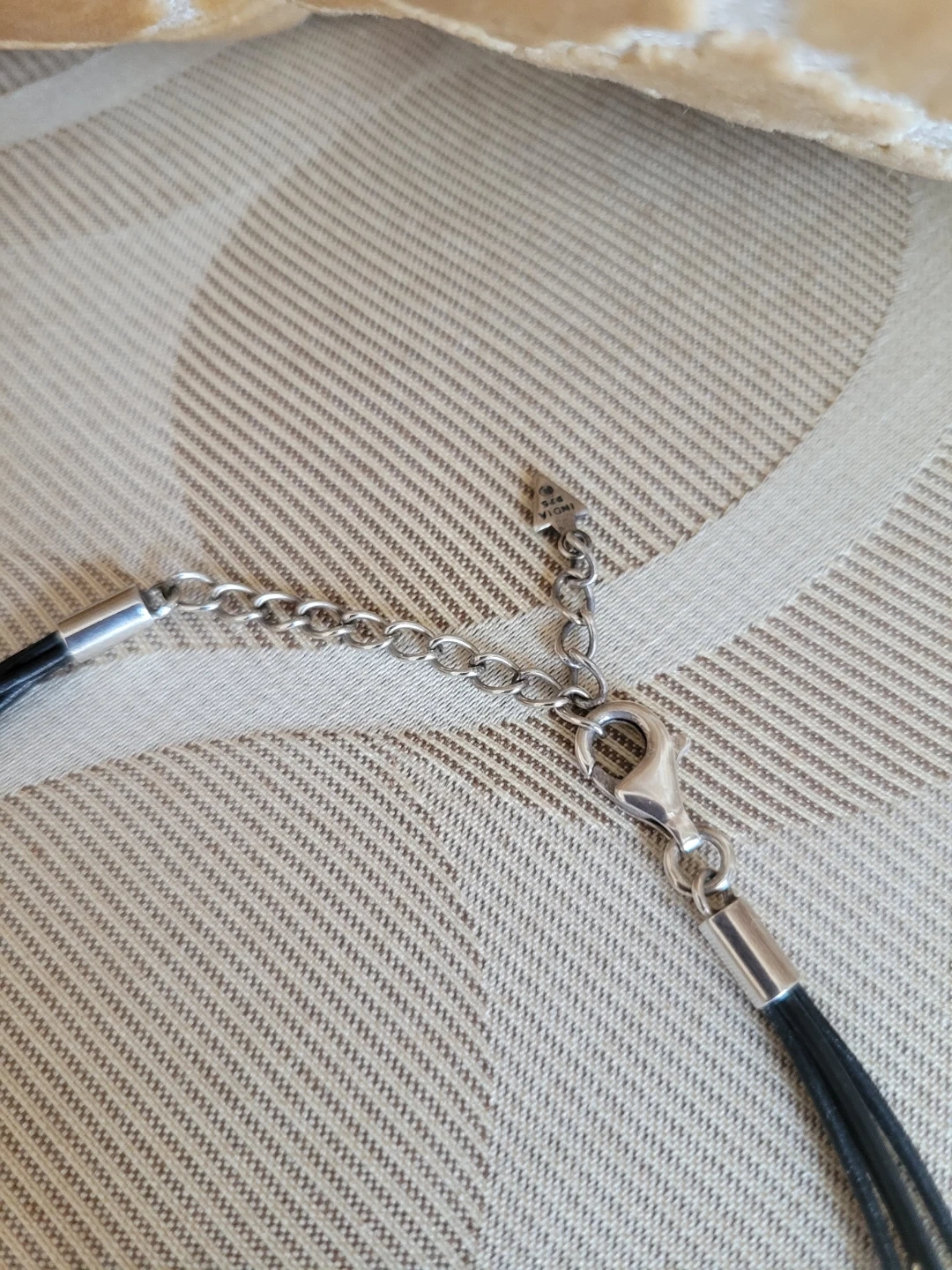 Featuring 4 strand black leather cord with Sterling Silver & CZ It has a 2' chain extender for adjustable length & Trademark Arrowhead This necklace is a nice accessory for everyday wear.