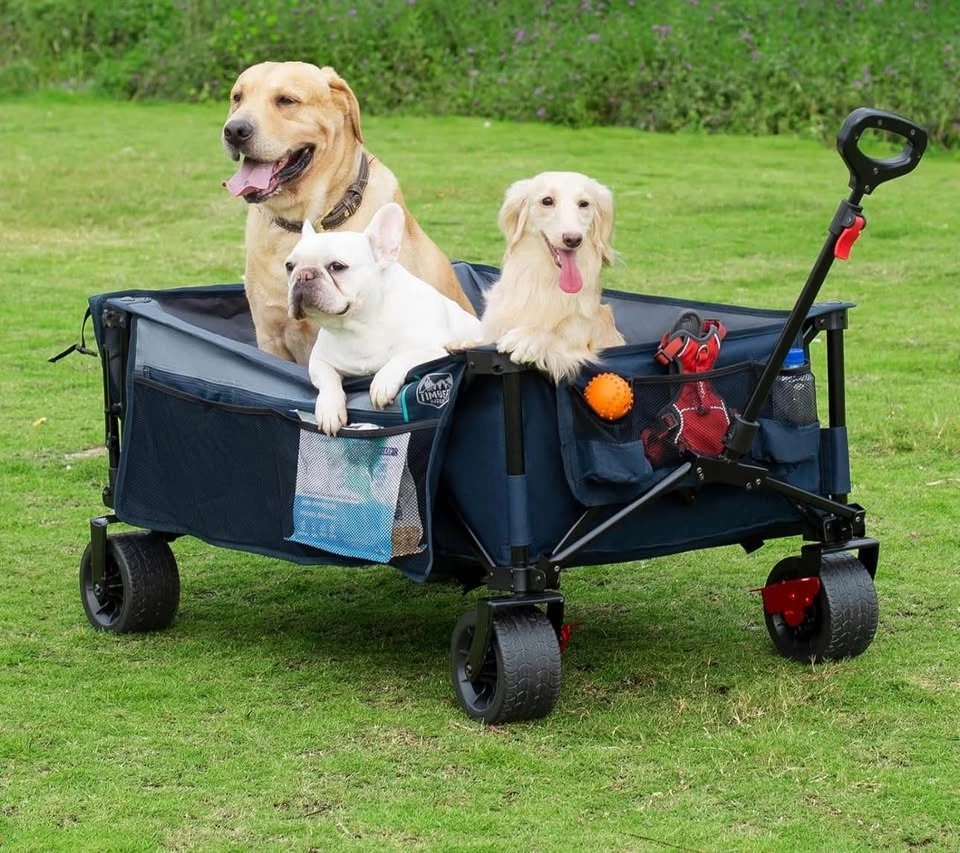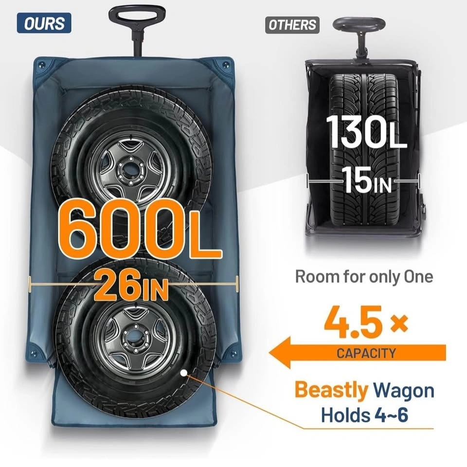 Brand new TIMBER RIDGE 600L Beast Wagon – Extra Wide & Heavy Duty! This wagon features a 26” Extra Wide design and is 55.25” Long with a huge 600L capacity. It supports up to 500 lbs and has big all-terrain wheels that work smoothly on grass, sand & gravel. It's folding and collapsible for easy storage and includes a cargo net & tailgate. Perfect for camping, sports, gardening, beach trips & pets.