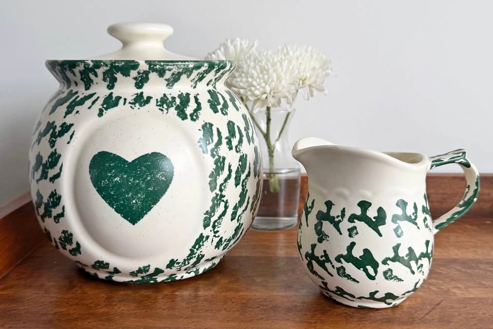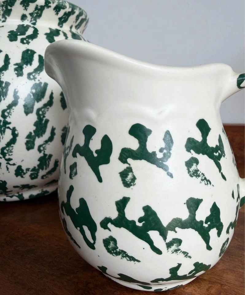 Farmhouse Spongeware Pitcher and Jar Set – Green and Cream