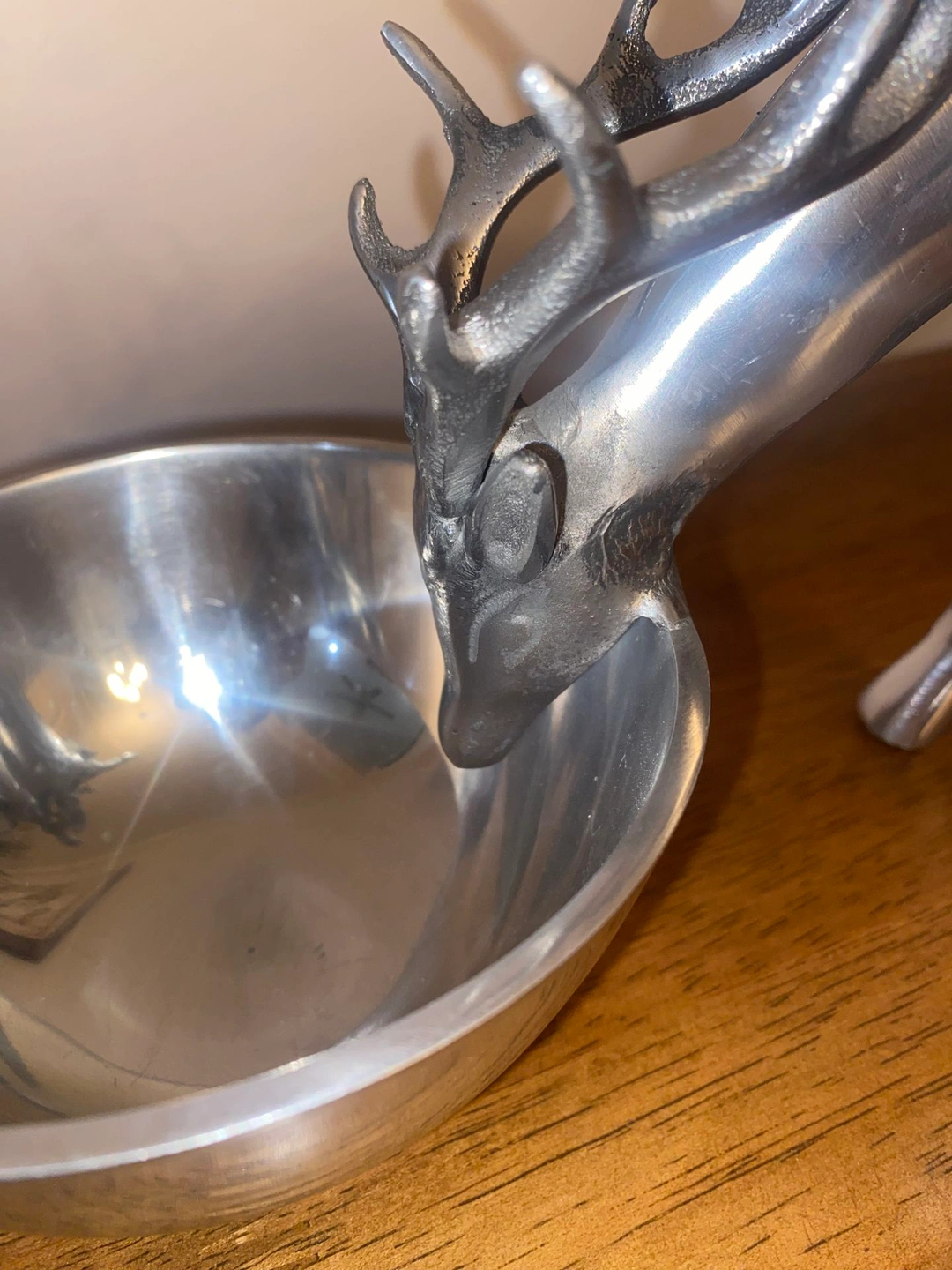 Rare Silver Chrome Reindeer Deer Snack Nut Bowl or Candy Dish