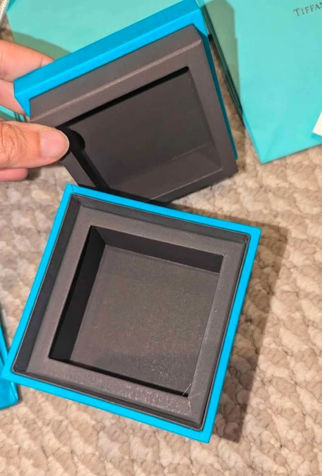Authentic Birks packaging set including a designer box with pouch and compartments, 2 shopping bags, Birks blue tissue paper (5 sheets), and branded ribbon. Perfect for gifting or resale presentation. Clean, good condition. $20 for all items firm, not splitting up.