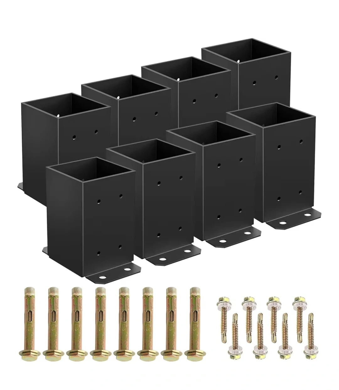 Discount - Was $85.59, now $50 4x4 Post Base 8 Pcs, Inner Size 3.5" x 3.5" Post Brackets, Heavy Duty Powder-Coated Fence Anchor Matte Black Pavilion Deck Railing Support Deck