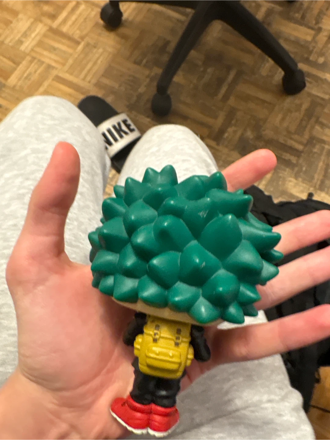 This is a Funko Pop! vinyl figure of Izuku Midoriya from My Hero Academia. It features his distinctive green spiky hair and school uniform. The figure stands about 3.75 inches tall. It's a great collectible for fans of the anime series!