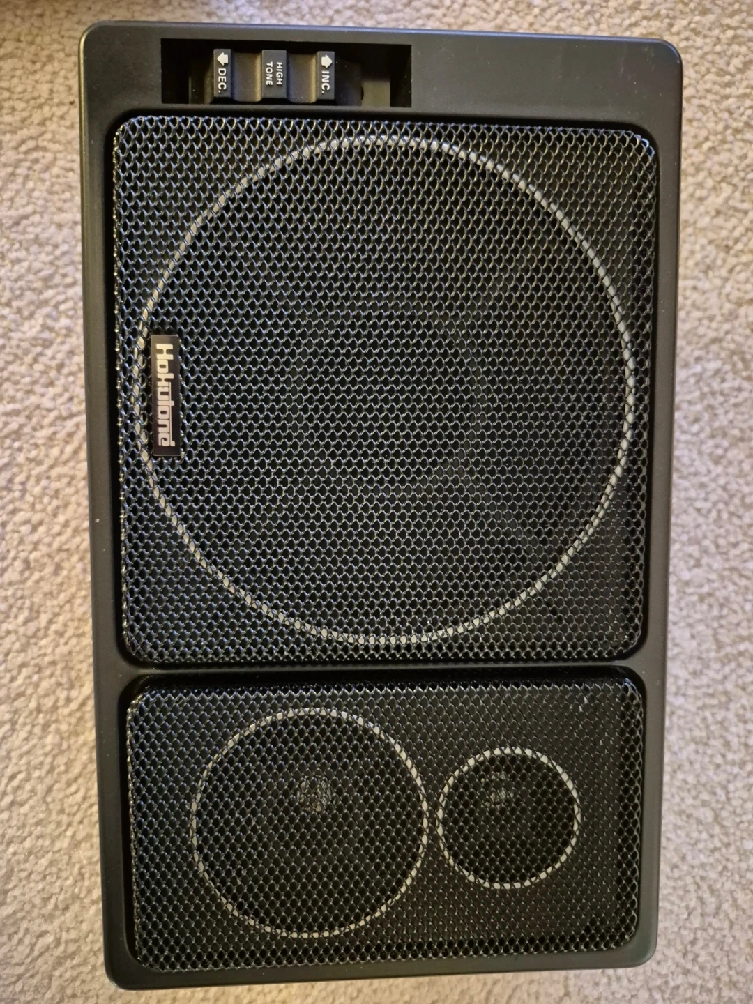 Selling a Hokutone CCS-3000 speaker system! It's a cool vintage piece with a unique design. The speaker is black and features a high/low tone adjustment switch. It's marked with '8N OM.10W MAX.30W JAPAN'.