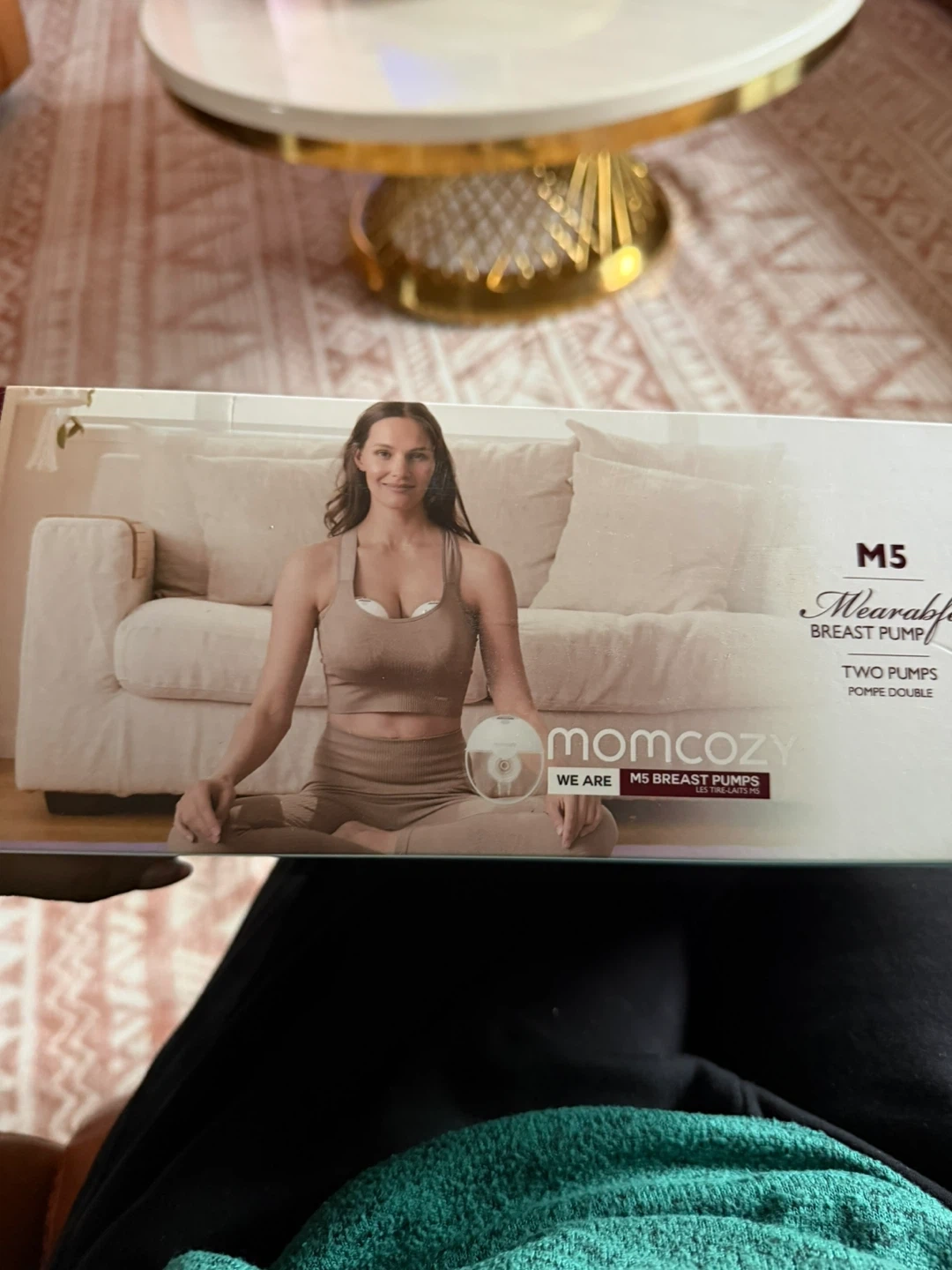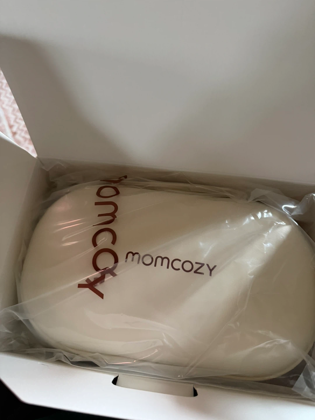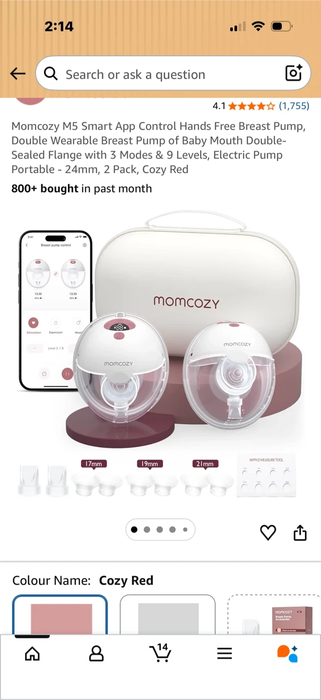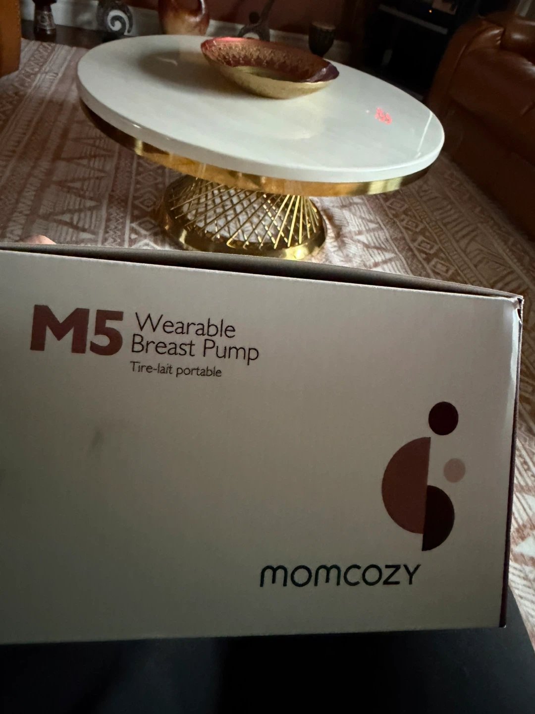 This is the Momcozy M5 wearable breast pump, it's a portable and hands-free device. It comes with two pumps and includes a carrying case. Available in Cozy Red.