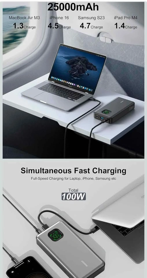 65W Power Bank, 25000MAH portable laptop charger