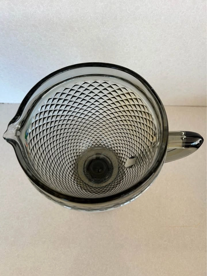 Vintage Smoke Gray Glass Pitcher Diamond Pattern