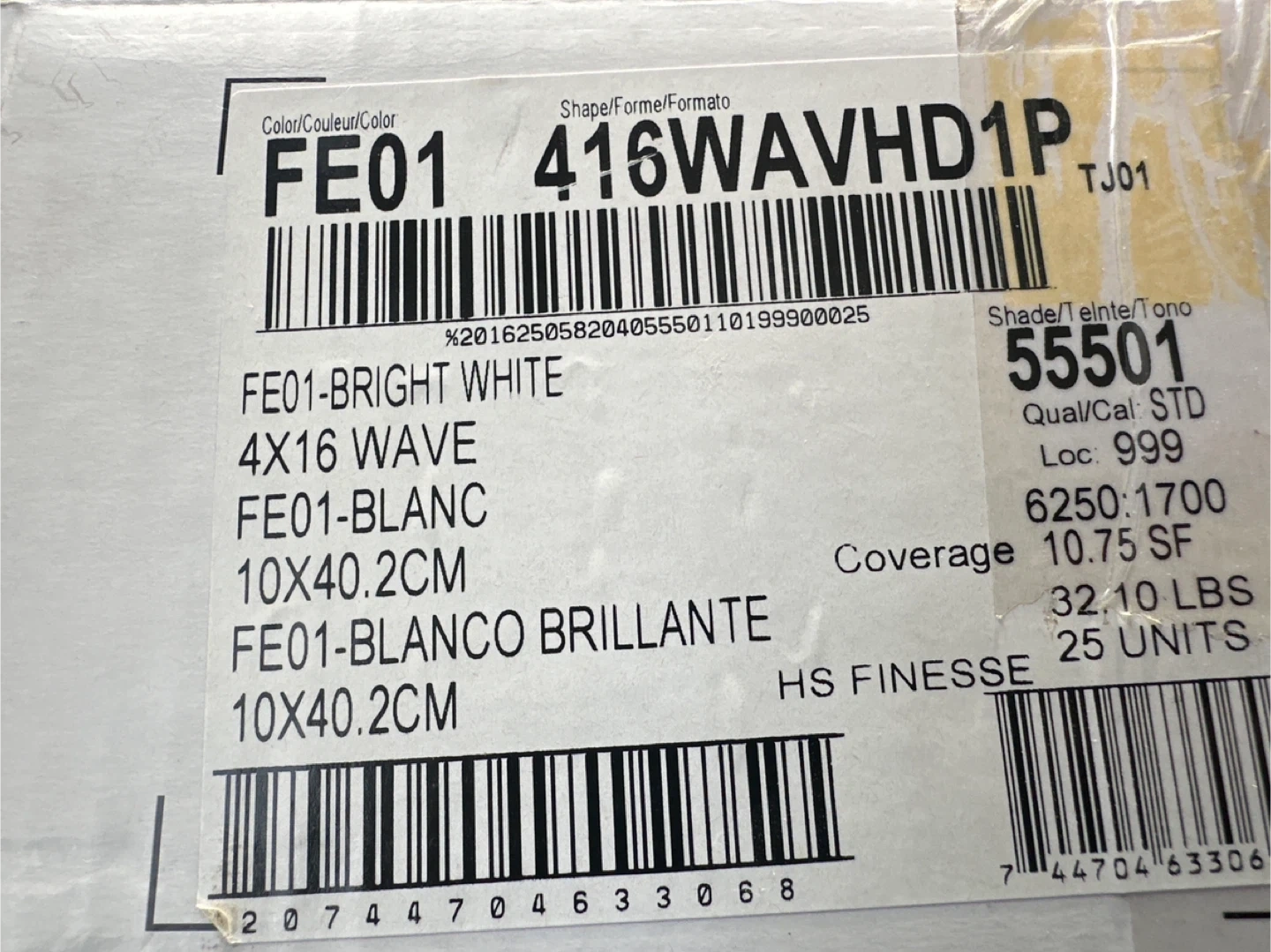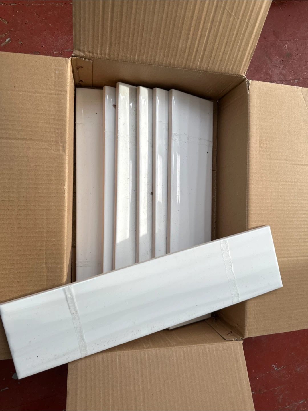 Bright white ceramic subway tiles for your home projects. Dimensions are 4x16 inches or 10x40.2cm. Only 7 left in the box.